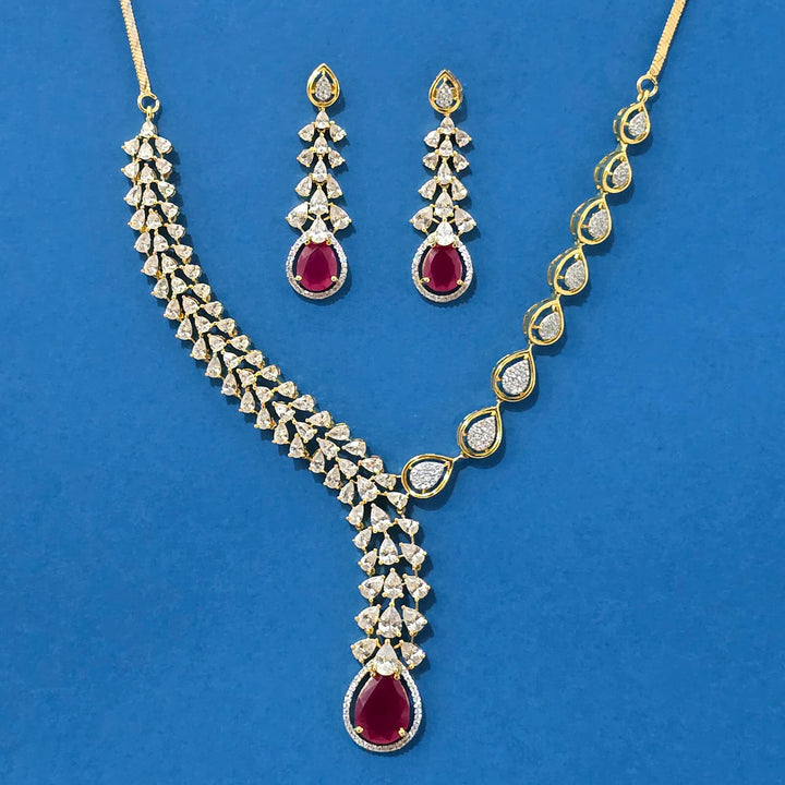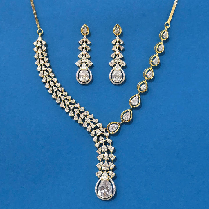 Weight: 49.0 Grams, Earring Height = 52 mm || Width = 15 mm,Regular Size And Adjustable,Handmade Design,2 Tone Plating,American Diamond Necklace Set