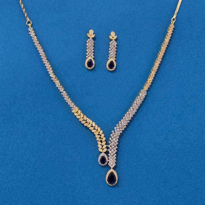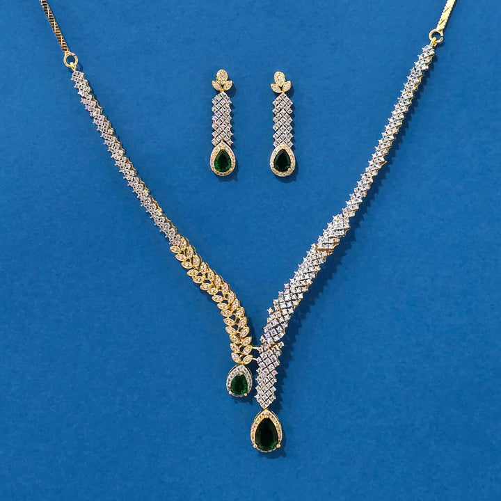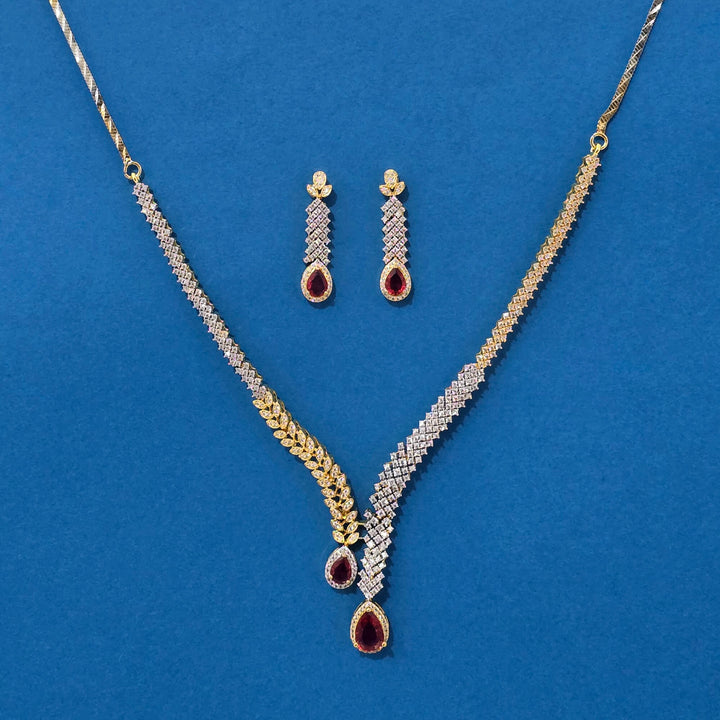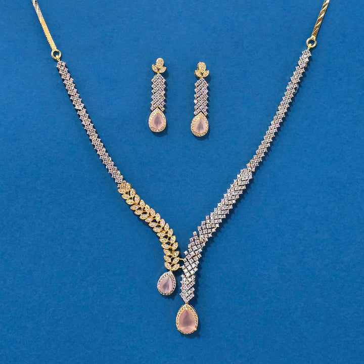 Weight: 31.0 Grams, Earring Height = 35 mm || Width = 9 mm,Regular Size And Adjustable,Delicate Design,2 Tone Plating,American Diamond Necklace Set