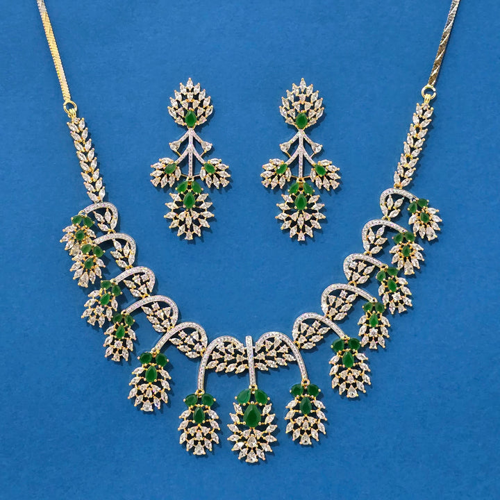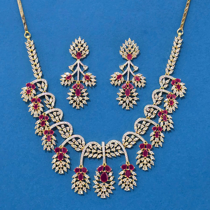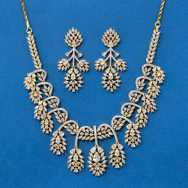 Weight: 63.0 Grams, Earring Height = 56 mm || Width = 28 mm,Regular Size And Adjustable,Trendy Design,2 Tone Plating,American Diamond Necklace Set