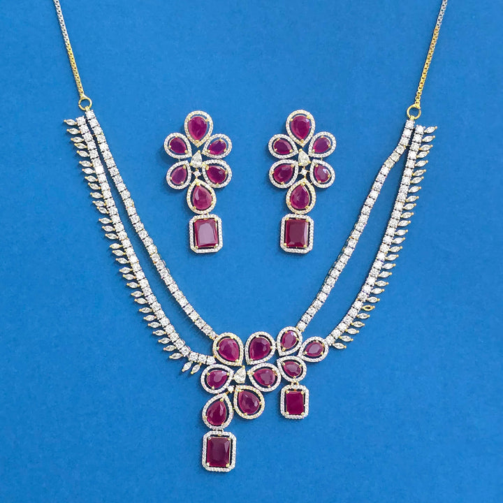 Weight: 64.0 Grams, Earring Height = 50 mm || Width = 25 mm,Regular Size And Adjustable,2 Line Necklace,2 Tone Plating,American Diamond Necklace Set