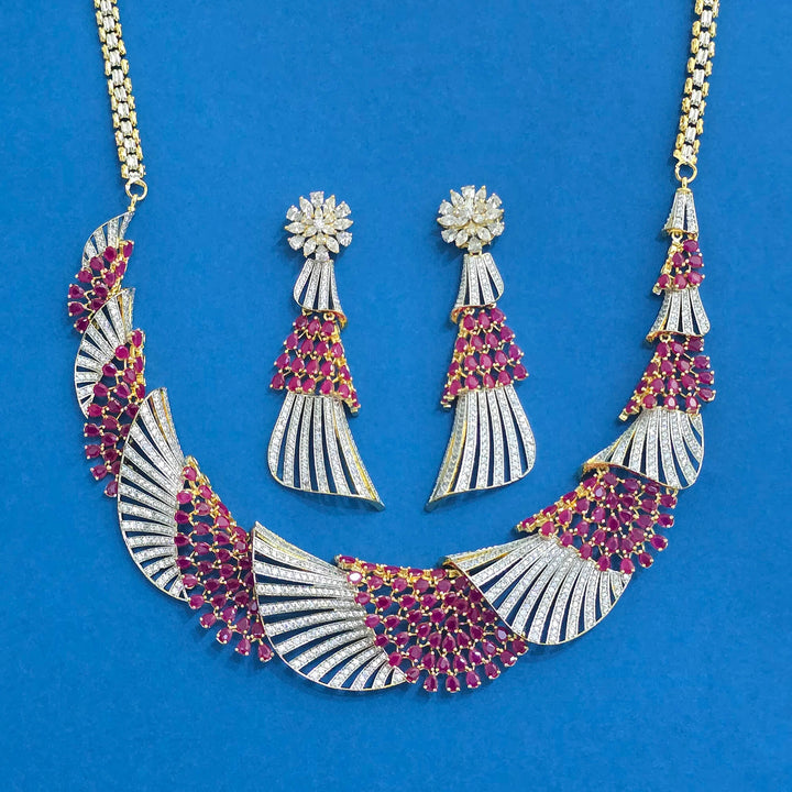 Weight: 82.0 Grams, Earring Height = 80 mm || Width = 27 mm,Regular Size And Adjustable,Trendy Look,2 Tone Plating,American Diamond Necklace Set