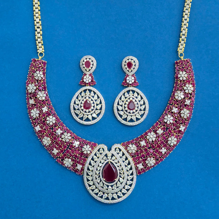 Weight: 103.0 Grams, Earring Height = 60 mm || Width = 30 mm,Regular Size And Adjustable,Bollywood Look,2 Tone Plating,American Diamond Necklace Set