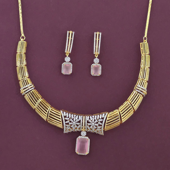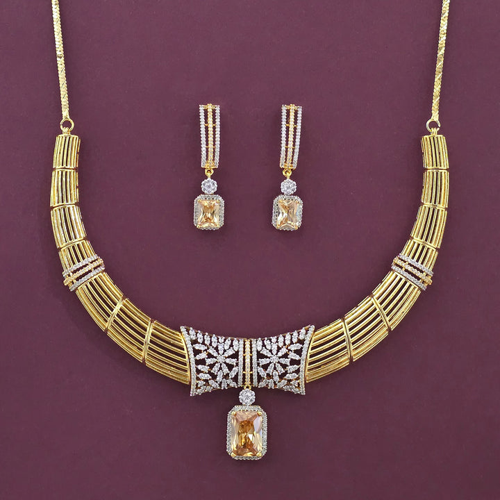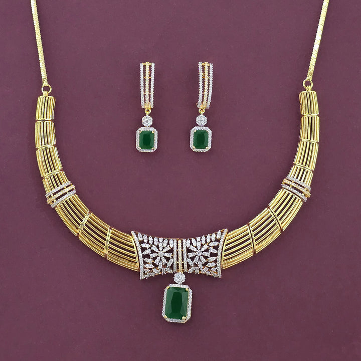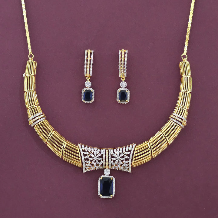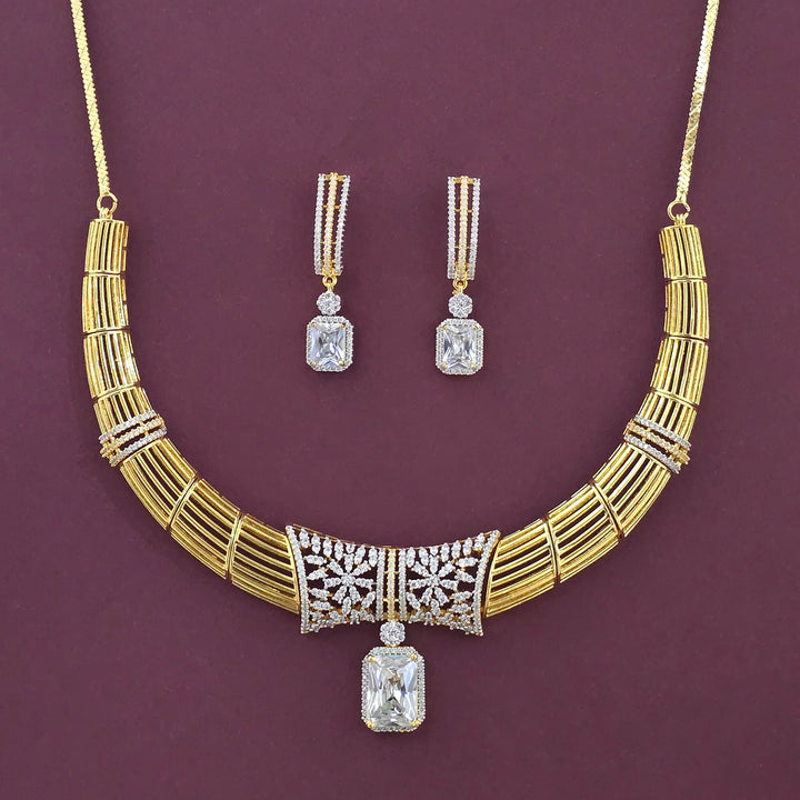 Weight: 48.0 Grams, Earring Height = 43 mm || Width = 10 mm,Regular Size And Adjustable,Trendy Look,2 Tone Plating,American Diamond Necklace Set