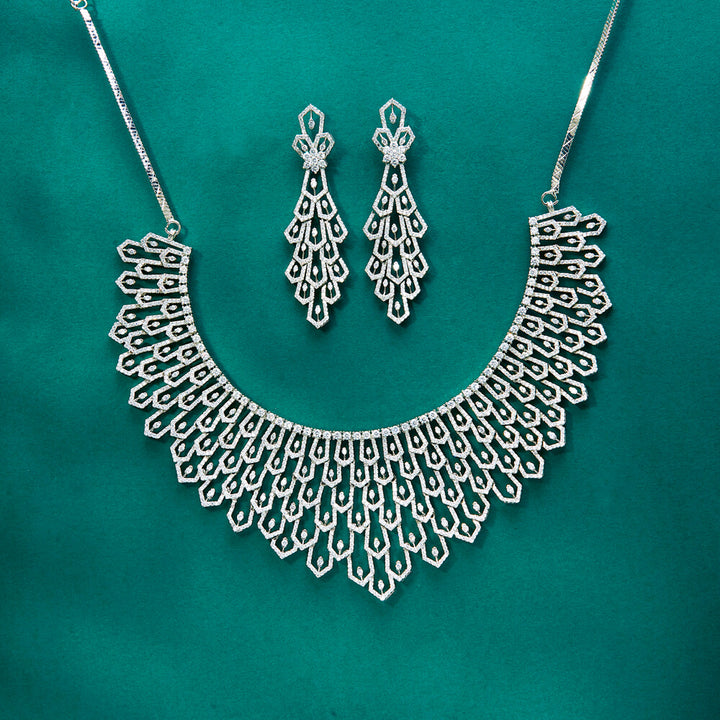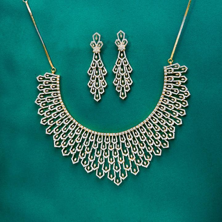 Weight: 94.0 Grams, Regular Size And Adjustable,Mukut Necklace,American Diamond Necklace Set