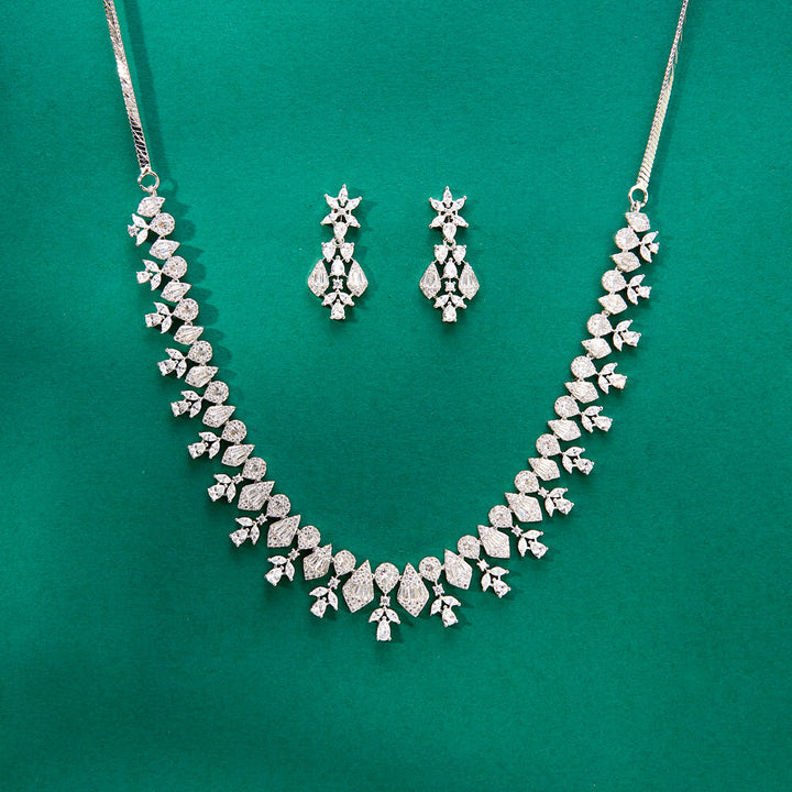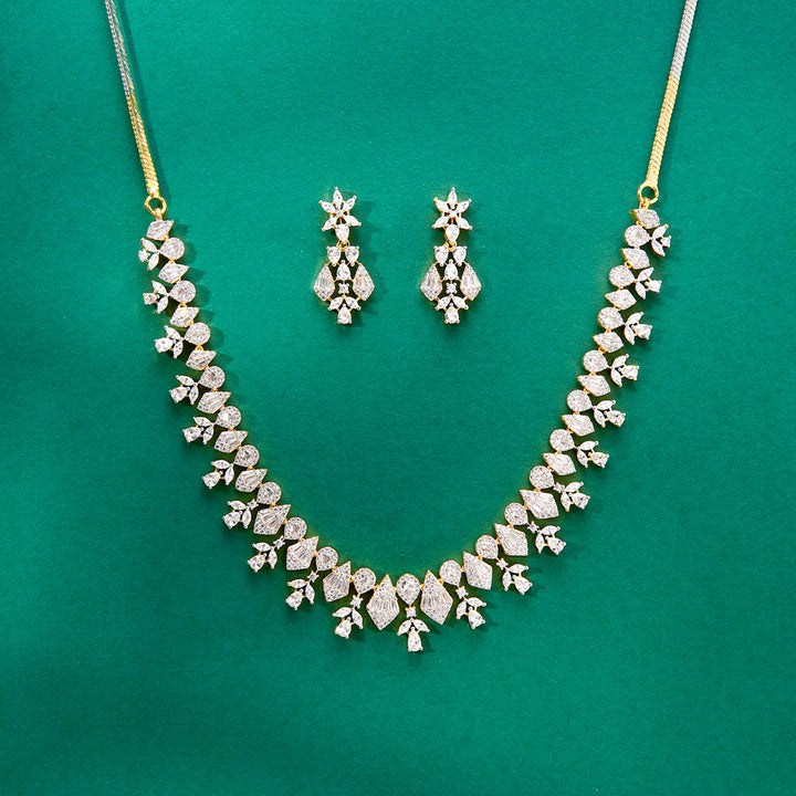 Weight: 41.0 Grams, Regular Size And Adjustable,Delicate Design,American Diamond Necklace Set