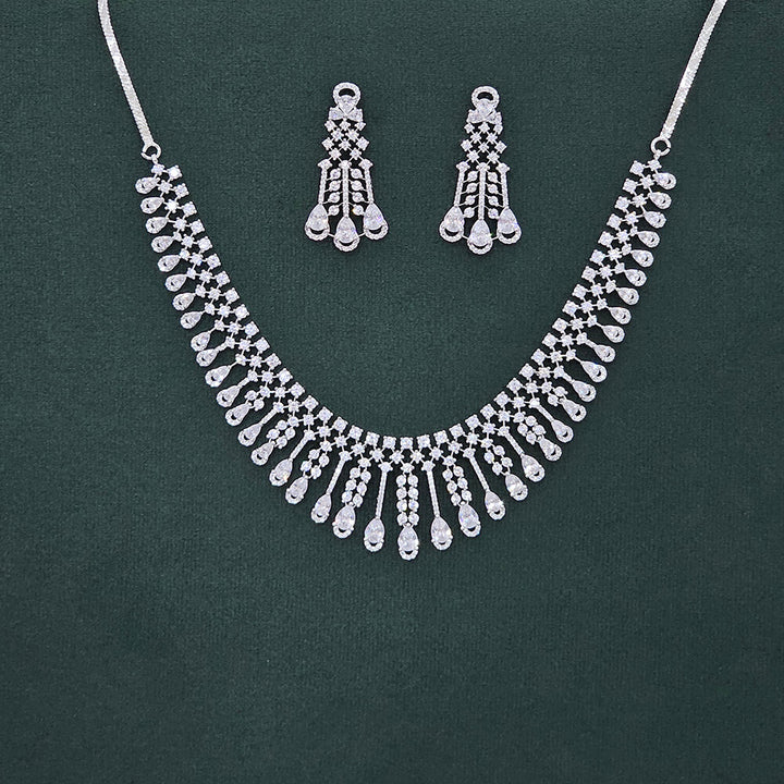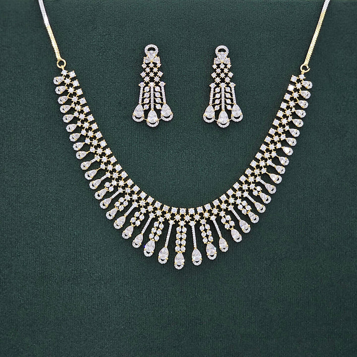 Weight: 67.0 Grams, Height = 44 Mm || Width = 21 Mm,Regular Size And Adjustable,Elegant Look,American Diamond Necklace Set
