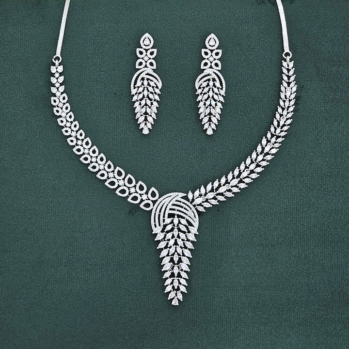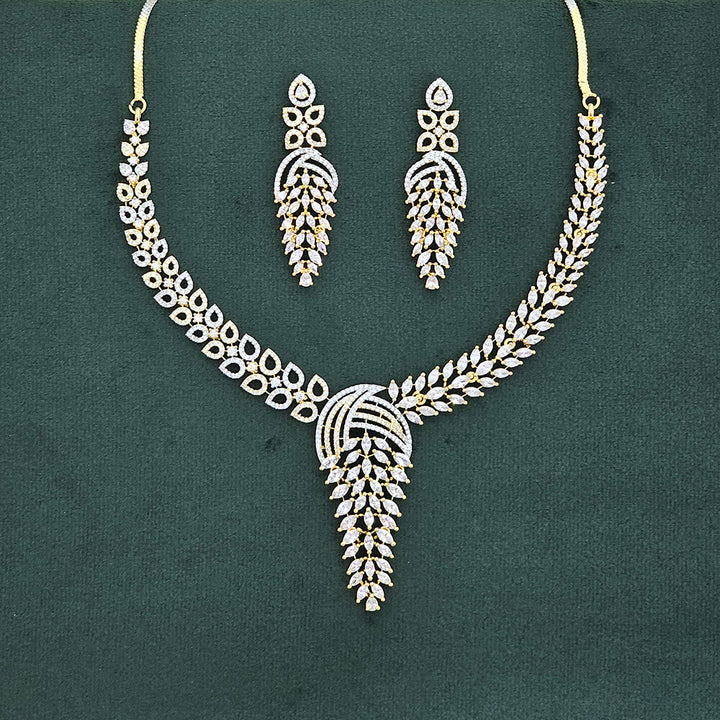 Weight: 52.0 Grams, Earring Height = 57 Mm || Width = 17 Mm,Regular Size And Adjustable,Elegant Look,American Diamond Necklace Set