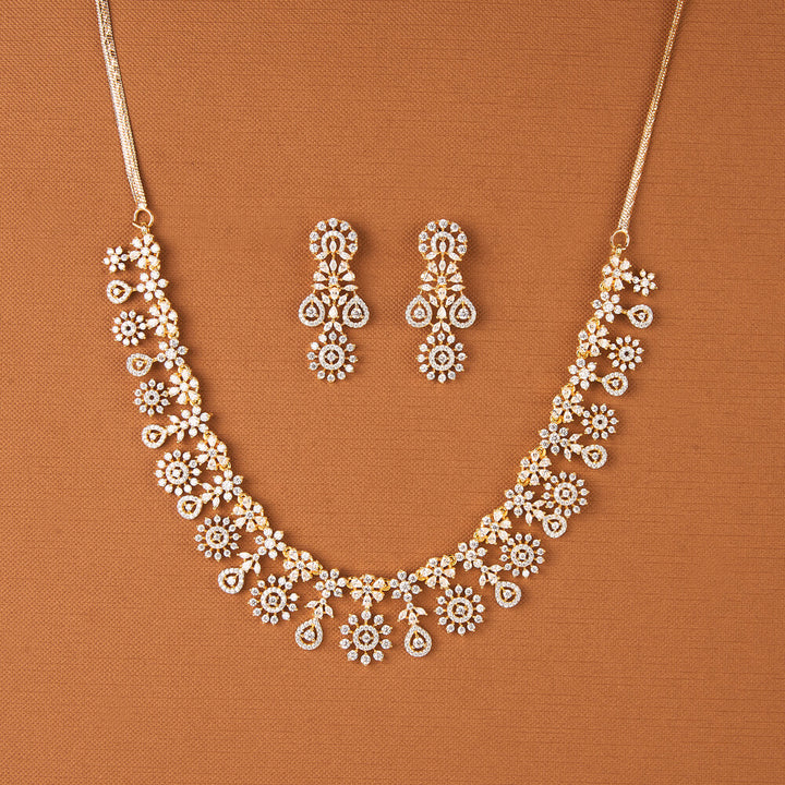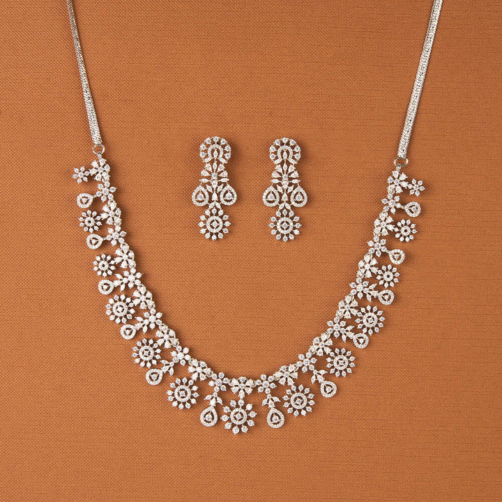 Weight: 50.0 Grams, Earring Height = 39 mm || Width = 16 mm,Regular Size And Adjustable,Elegant Look,American Diamond Necklace Set