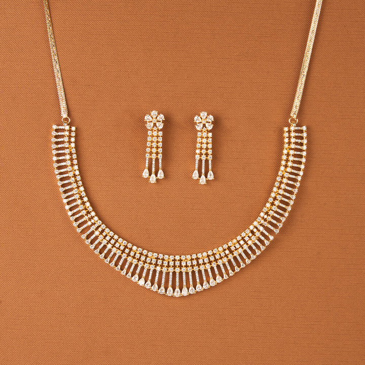 Weight: 48.0 Grams, Earring Height = 35 mm || Width = 11 mm,Regular Size And Adjustable,Elegant Look,American Diamond Necklace Set