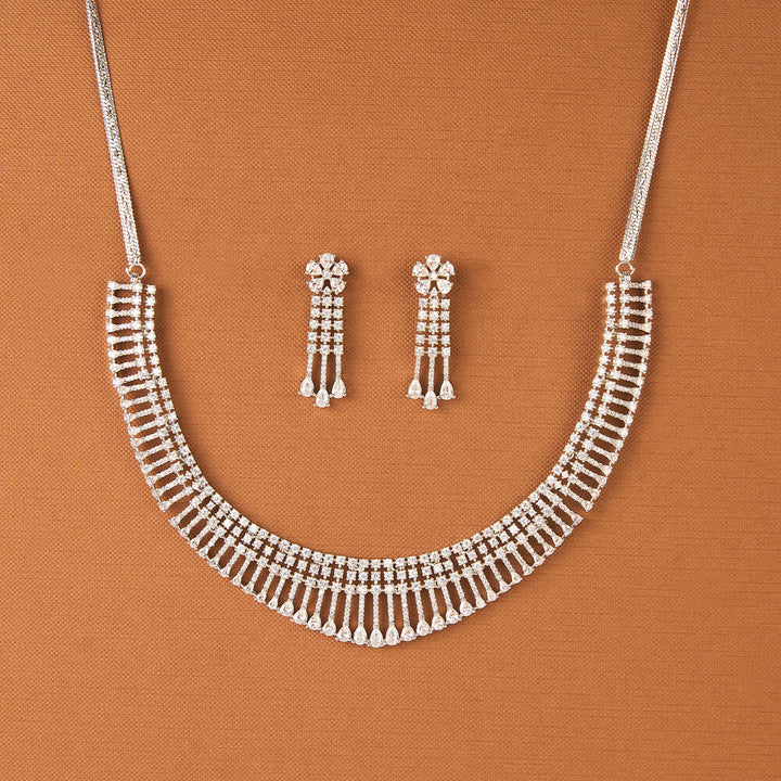 437639 Cz Classic Necklace With 2 Tone Rhodium Plating