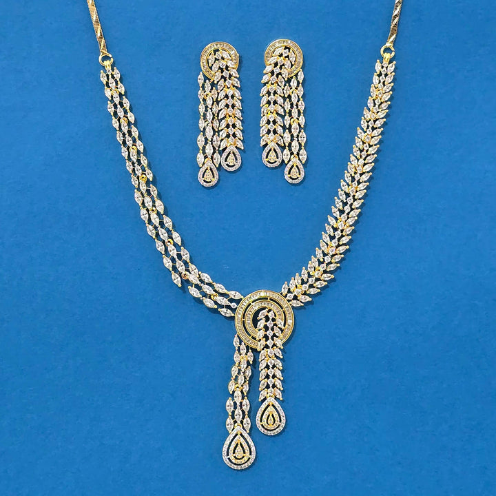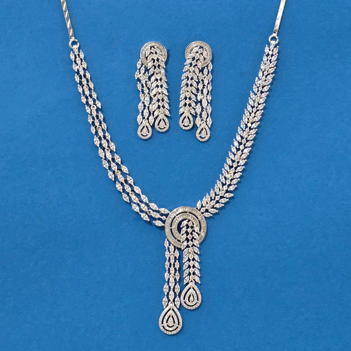 Weight: 47.0 Grams, Earring Height = 50 mm || Width = 18 mm,Regular Size And Adjustable,Bollywood Look,2 Tone Plating,Rhodium Plating,American Diamond Necklace Set