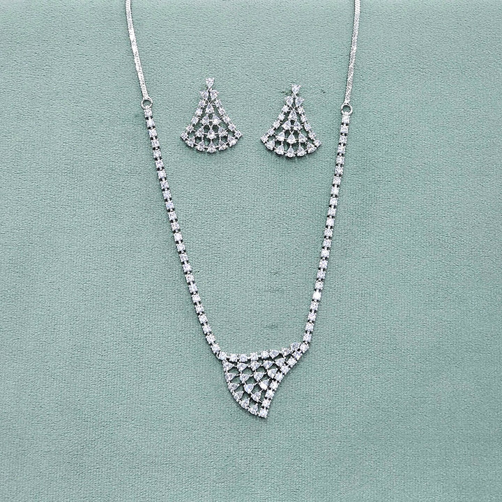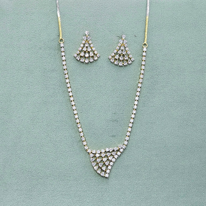 Weight: 35.0 Grams, Earring Height = 30 mm || Width = 25 mm,Regular Size And Adjustable,Bollywood Look,American Diamond Necklace Set
