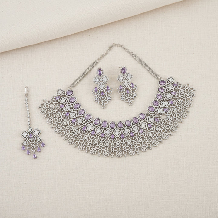 Regular Size And Adjustable,Bollywood Look,American Diamond Necklace Set