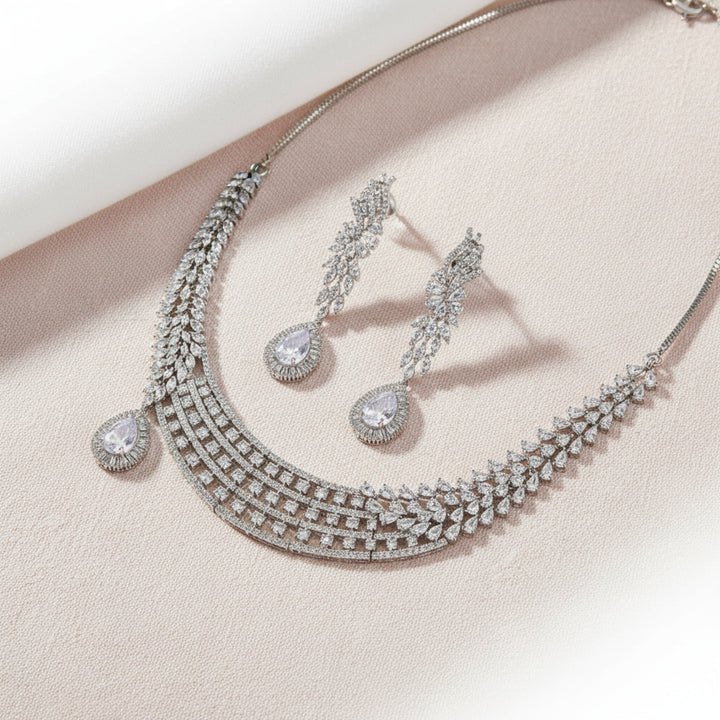 Regular Size And Adjustable,Bollywood Look,American Diamond Necklace Set