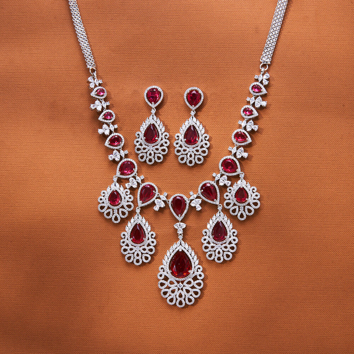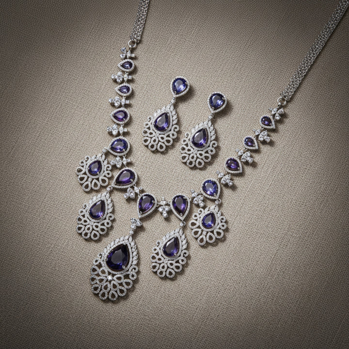 Weight: 82.0 Grams, Regular Size And Adjustable,Elegant Look,American Diamond Necklace Set