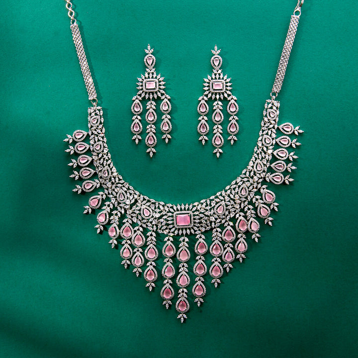 Weight: 138.0 Grams, Regular Size And Adjustable,Bollywood Look,American Diamond Necklace Set