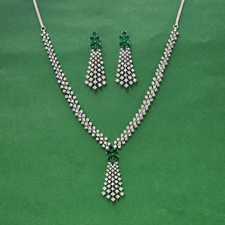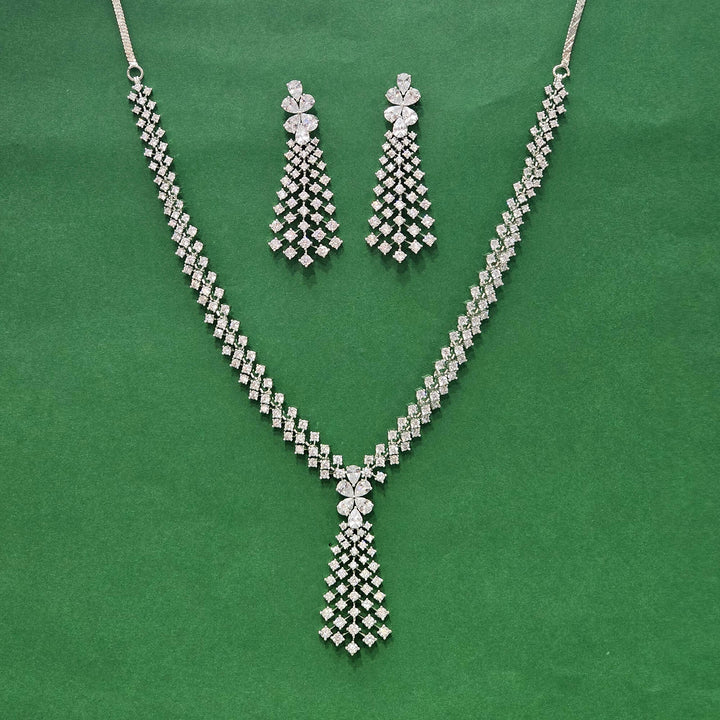 Weight: 50.0 Grams, Earring Height = 55 mm || Width = 22 mm,Regular Size And Adjustable,Bollywood Look,American Diamond Necklace Set