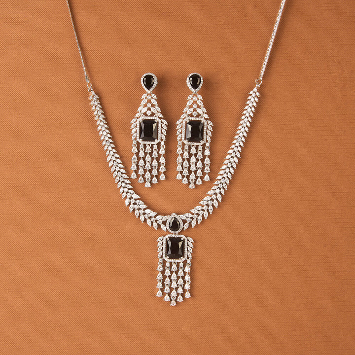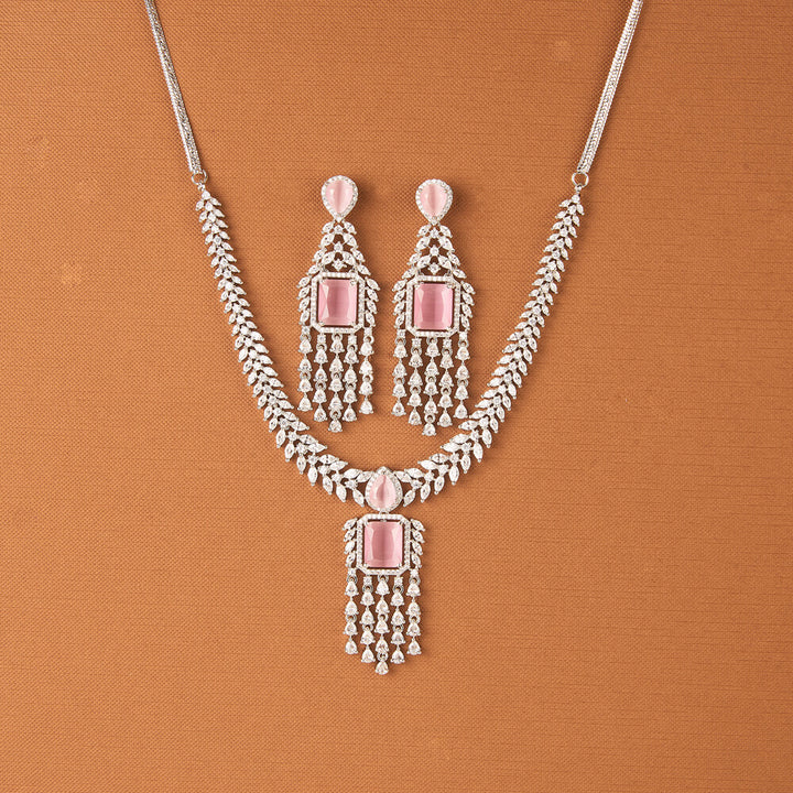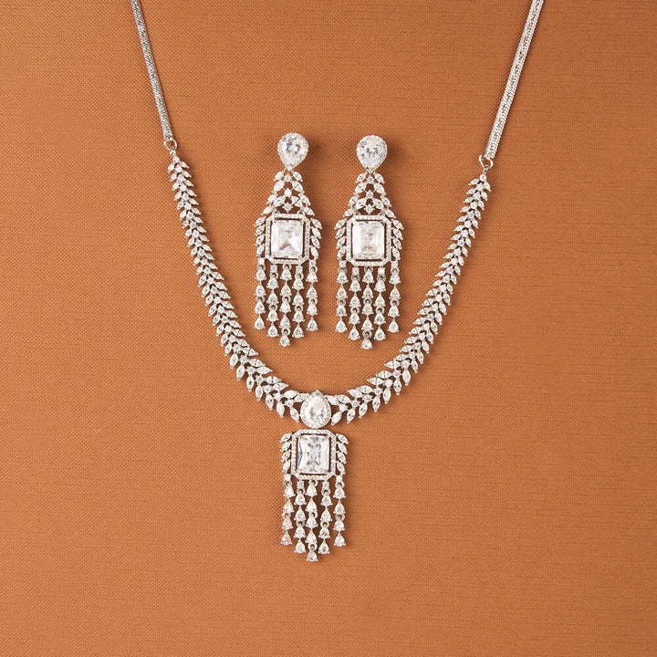 437632 Cz Classic Necklace With Rhodium Plating