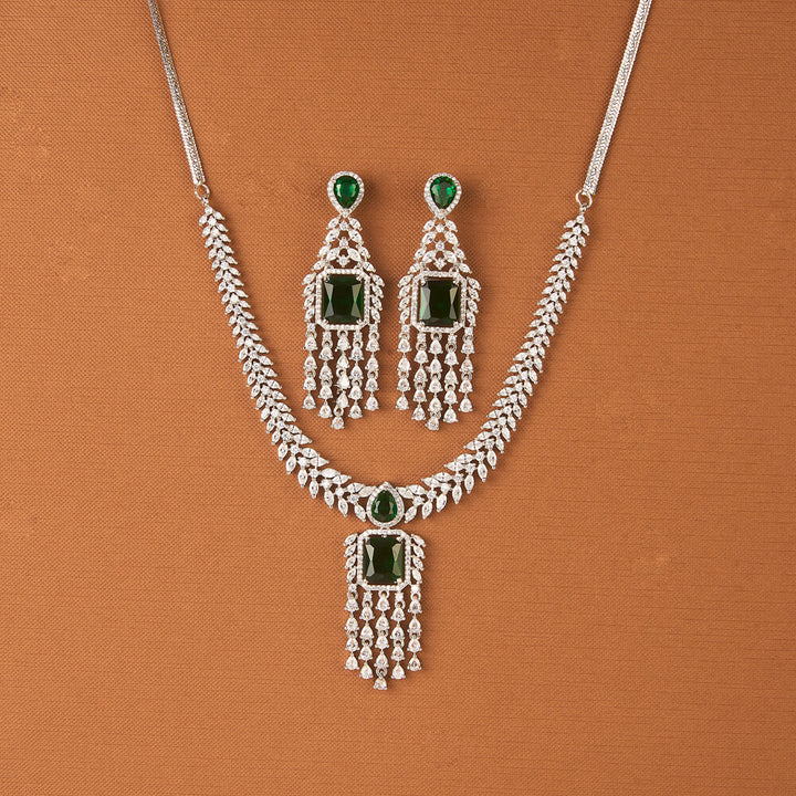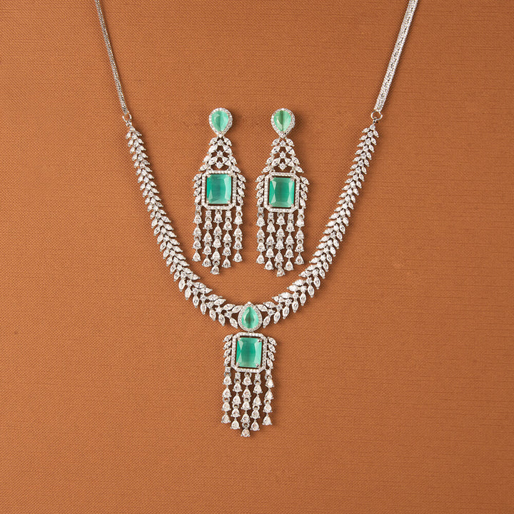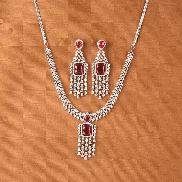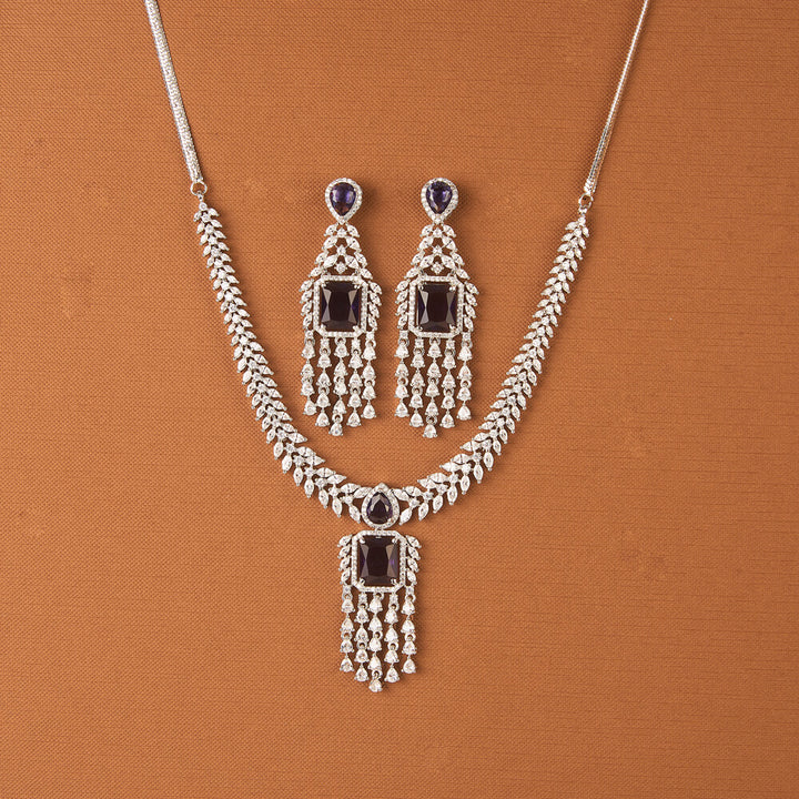Weight: 61.0 Grams, Earring Height = 66 mm || Width = 22 mm,Regular Size And Adjustable,Bollywood Look,American Diamond Necklace Set