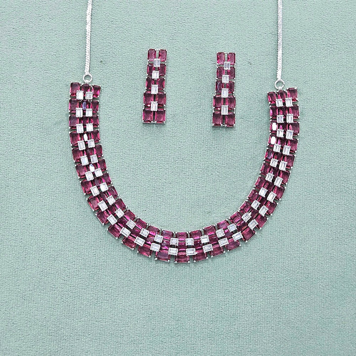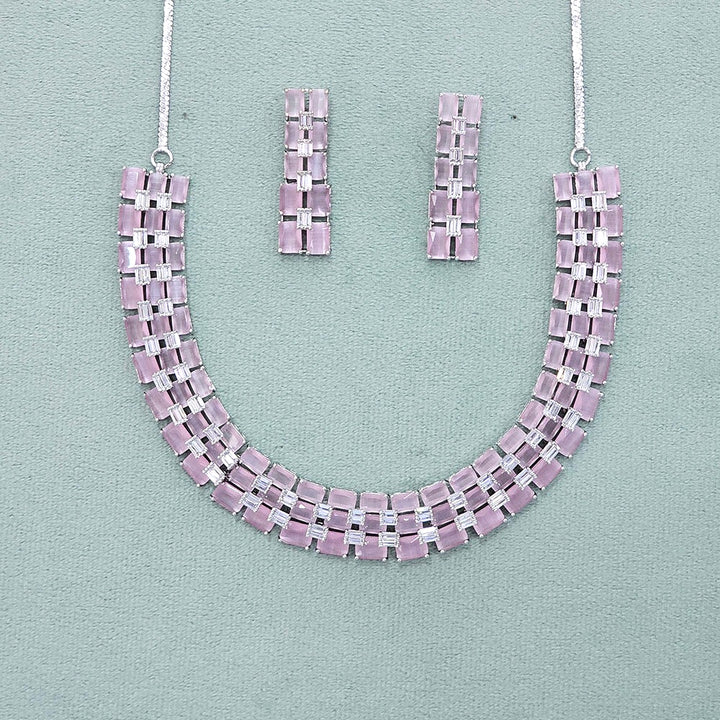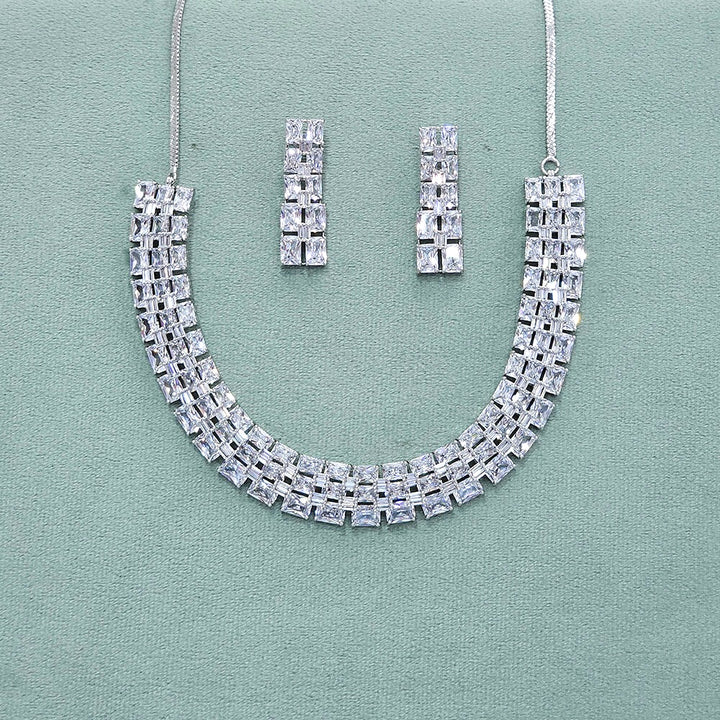 437868 Cz Classic Necklace With Rhodium Plating