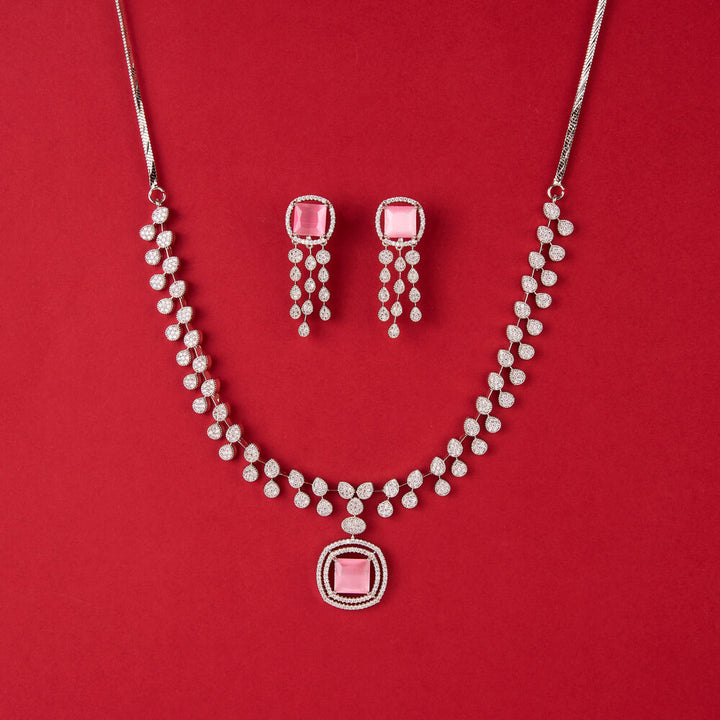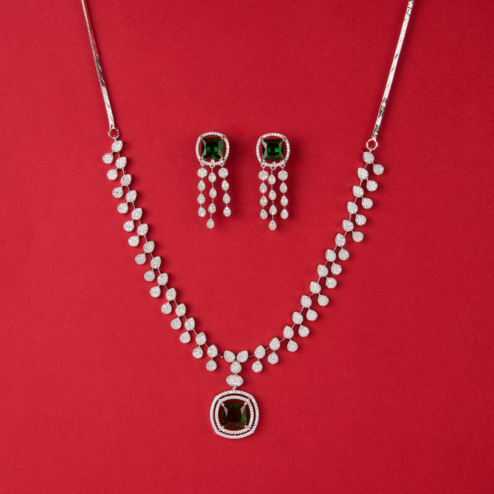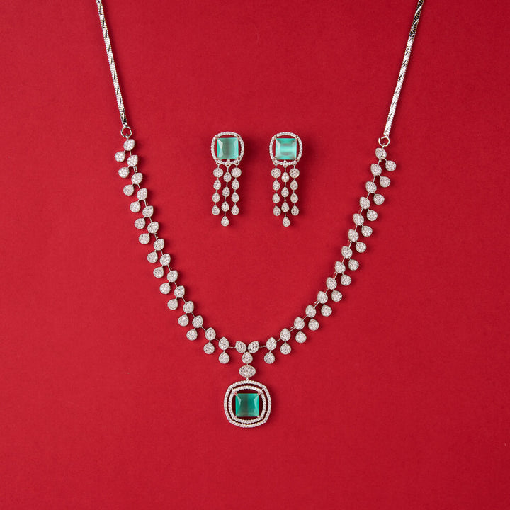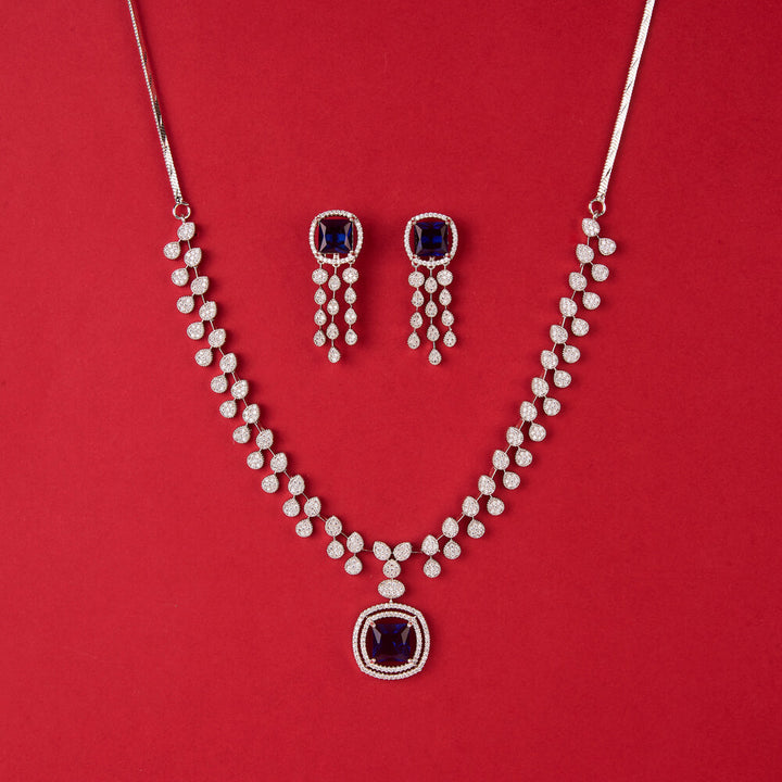 Weight: 41.0 Grams, Earring Height = 40 mm || Width = 15 mm,Regular Size And Adjustable,Rhodium Plating,American Diamond Necklace Set