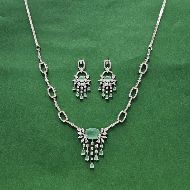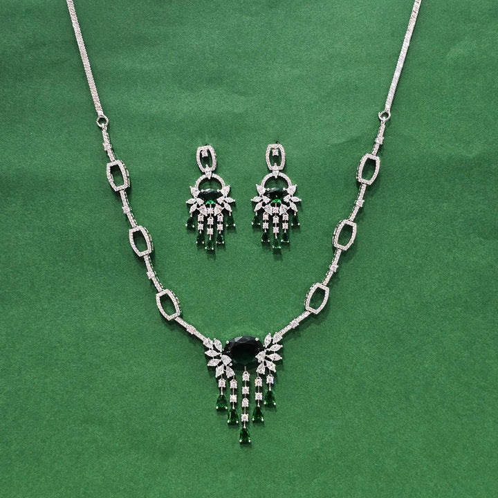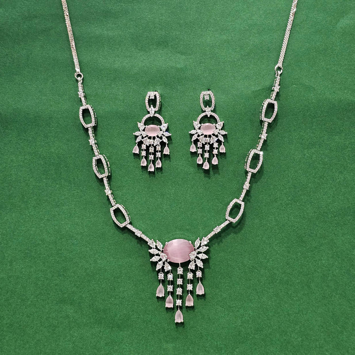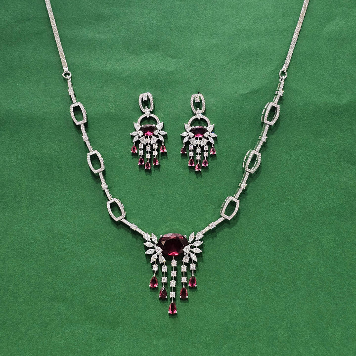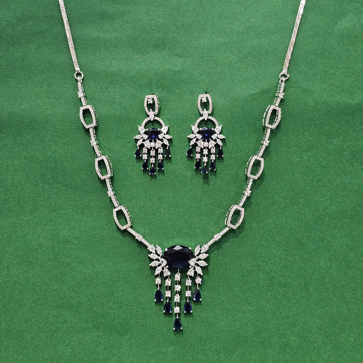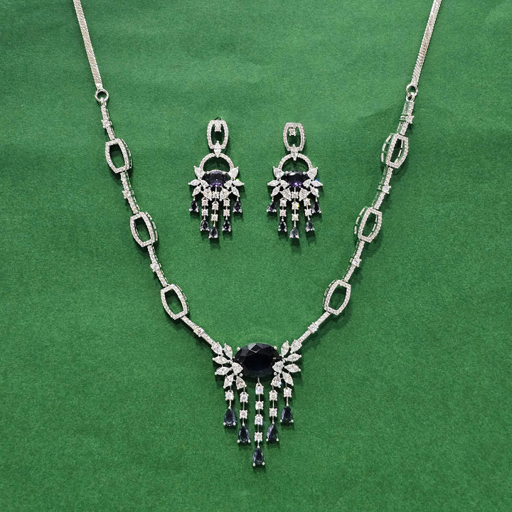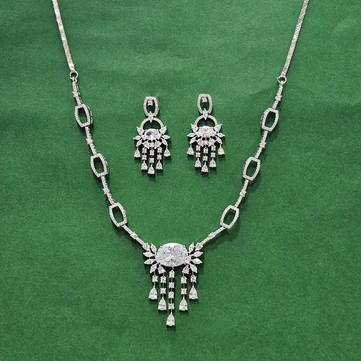 Weight: 35.0 Grams, Earring Height = 40 mm || Width = 20 mm,Regular Size And Adjustable,Delicate Design,Rhodium Plating,American Diamond Necklace Set