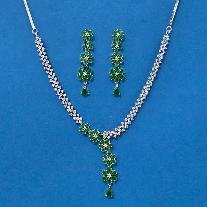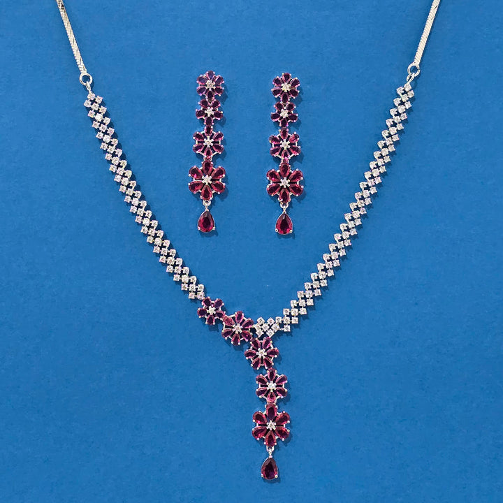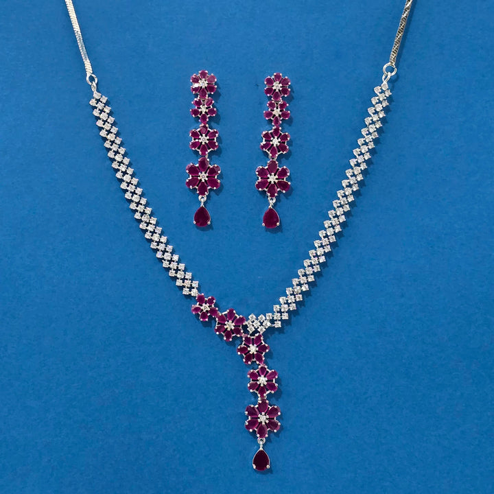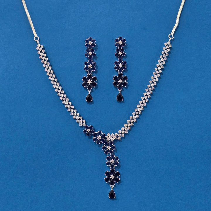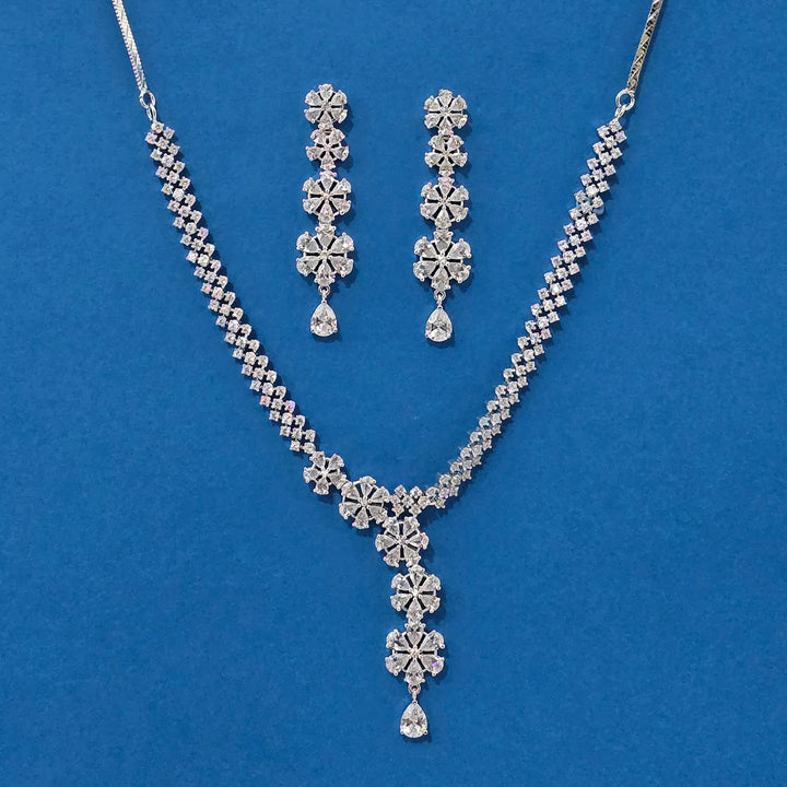 Weight: 40.0 Grams, Earring Height = 60 mm || Width = 14 mm,Regular Size And Adjustable,Delicate Design,Rhodium Plating,American Diamond Necklace Set