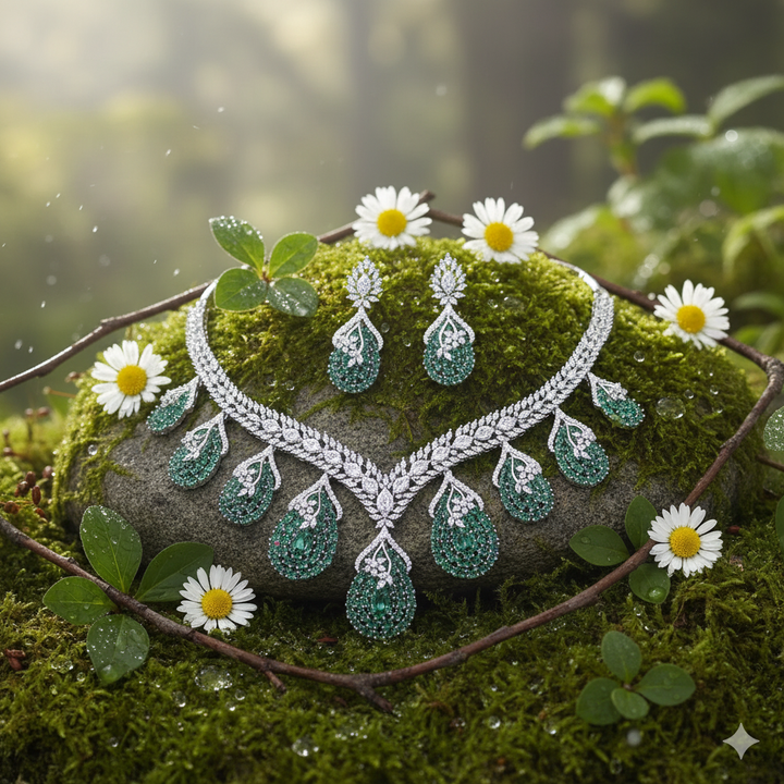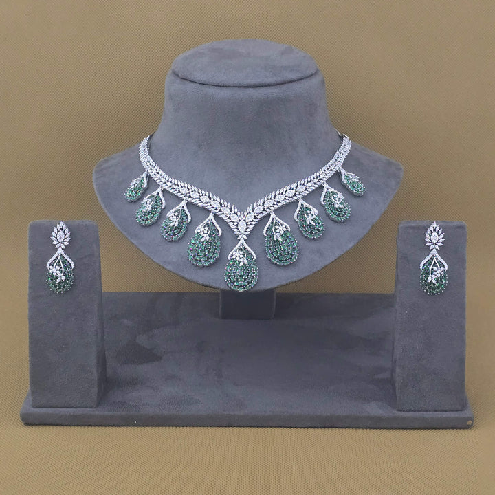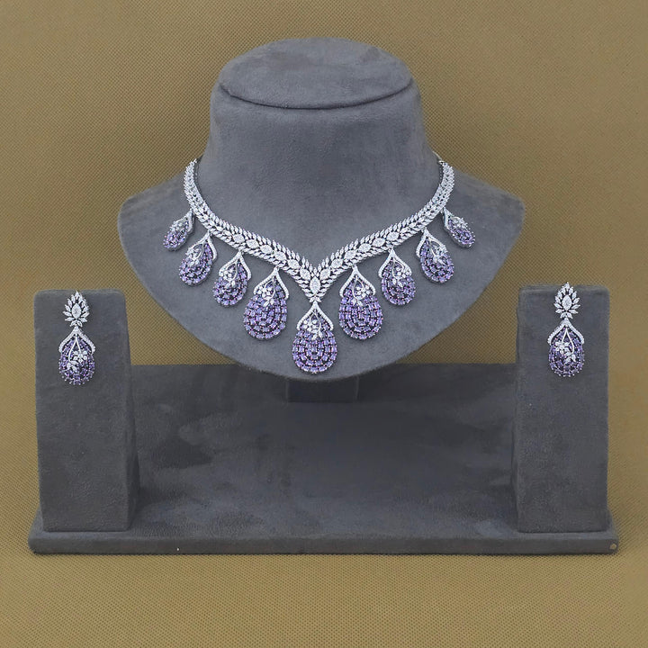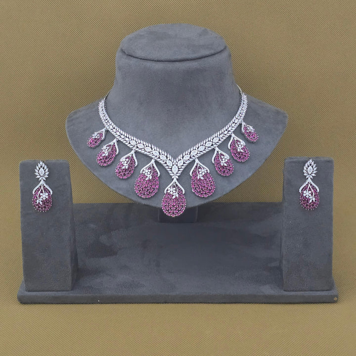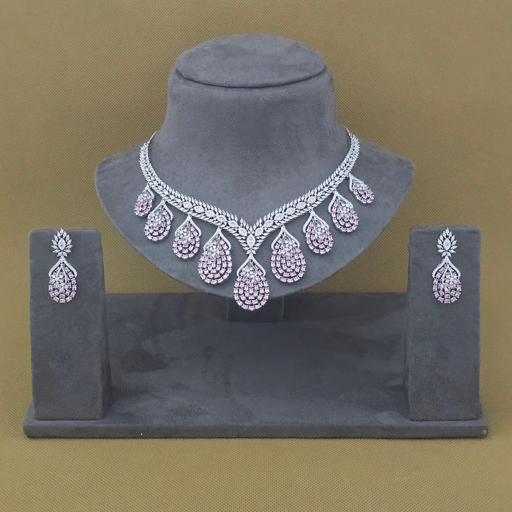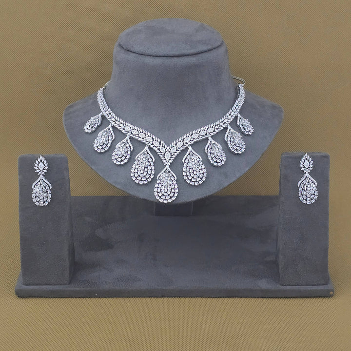 Weight: 73.0 Grams, Earring Height = 40 mm || Width = 15 mm,Regular Size And Adjustable,Bollywood Look,Rhodium Plating,American Diamond Necklace Set
