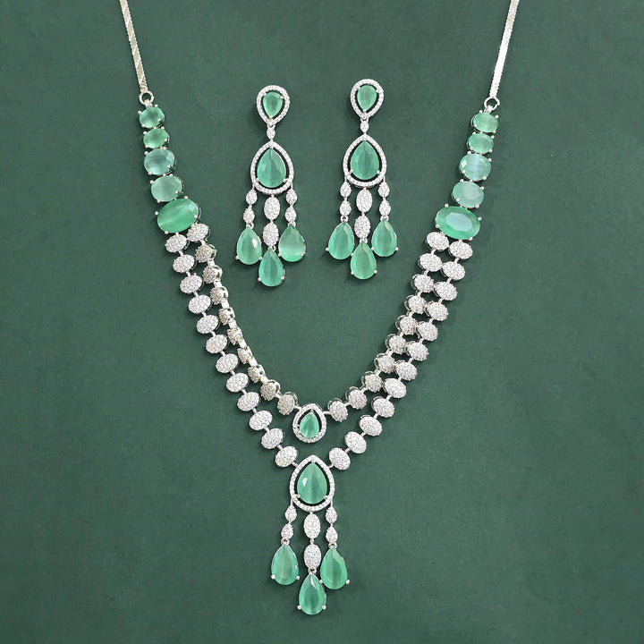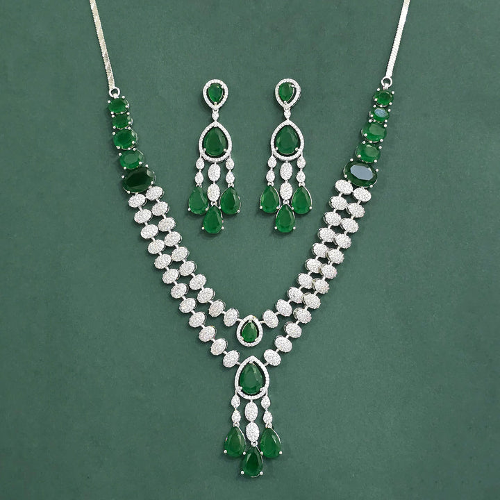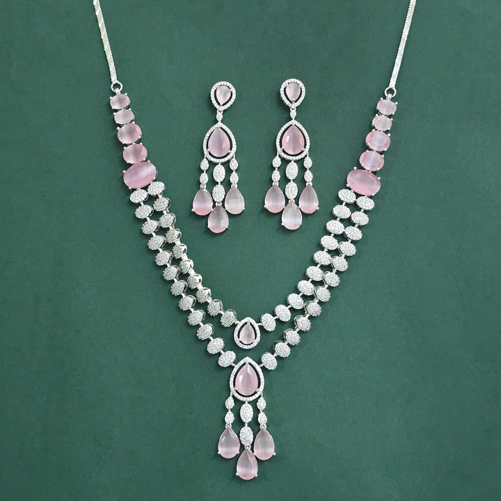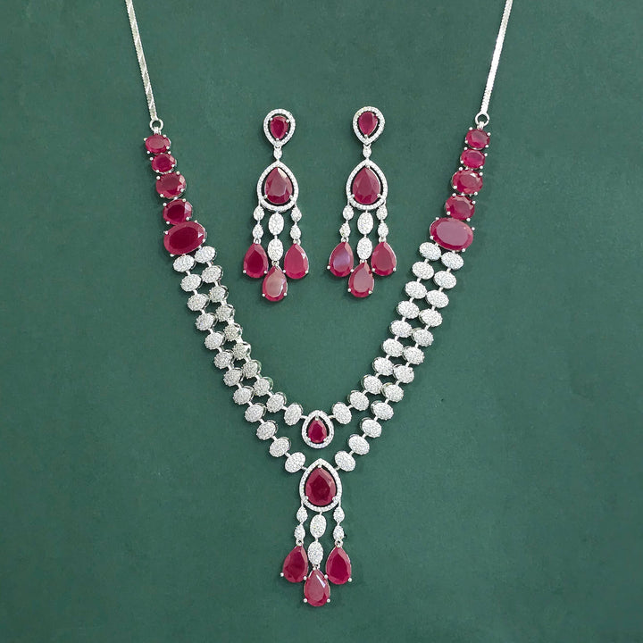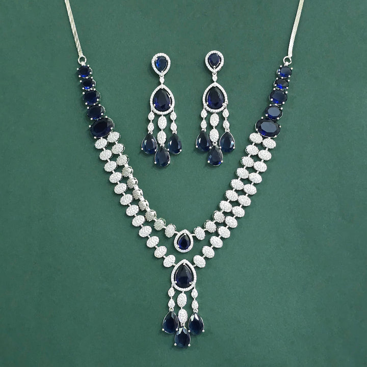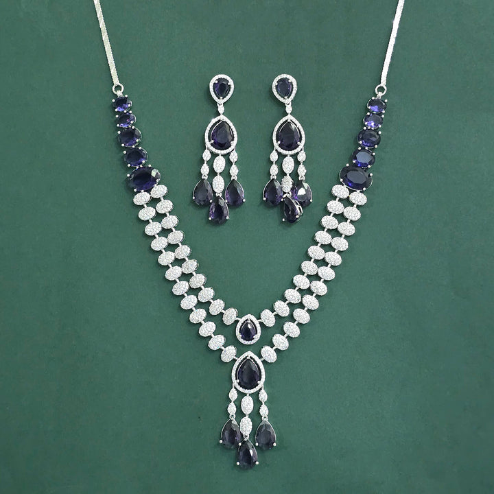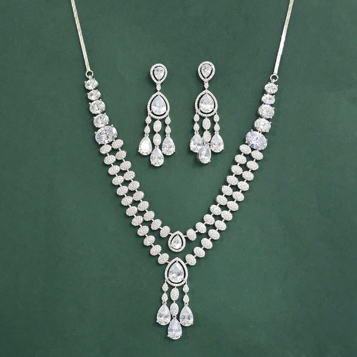 Weight: 58.0 Grams, Earring Height = 65 mm || Width = 22 mm,Regular Size And Adjustable,Bollywood Look,Rhodium Plating,American Diamond Necklace Set