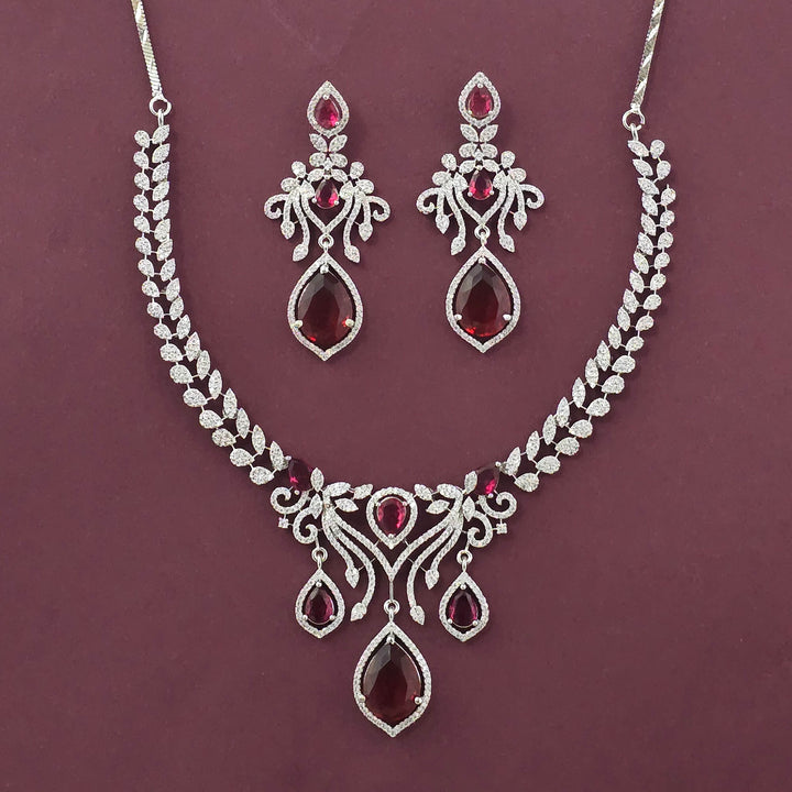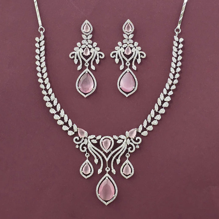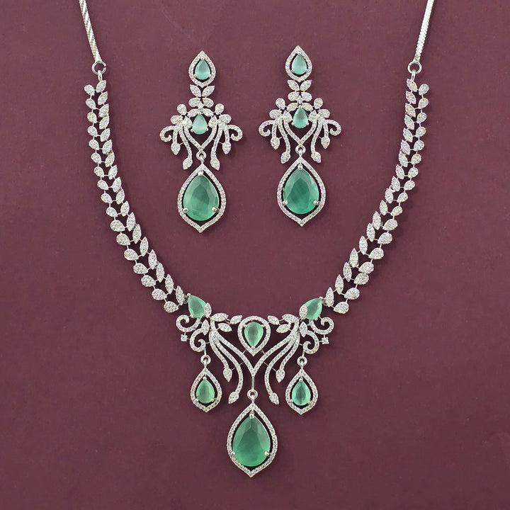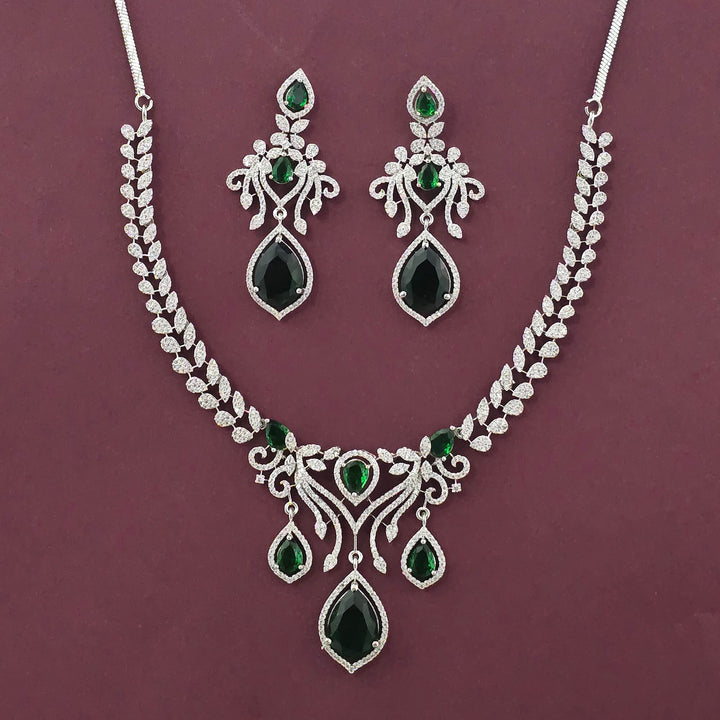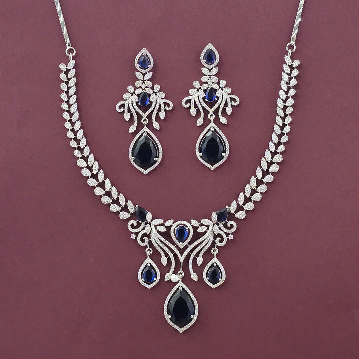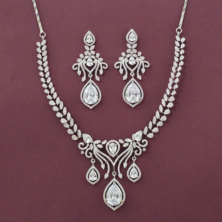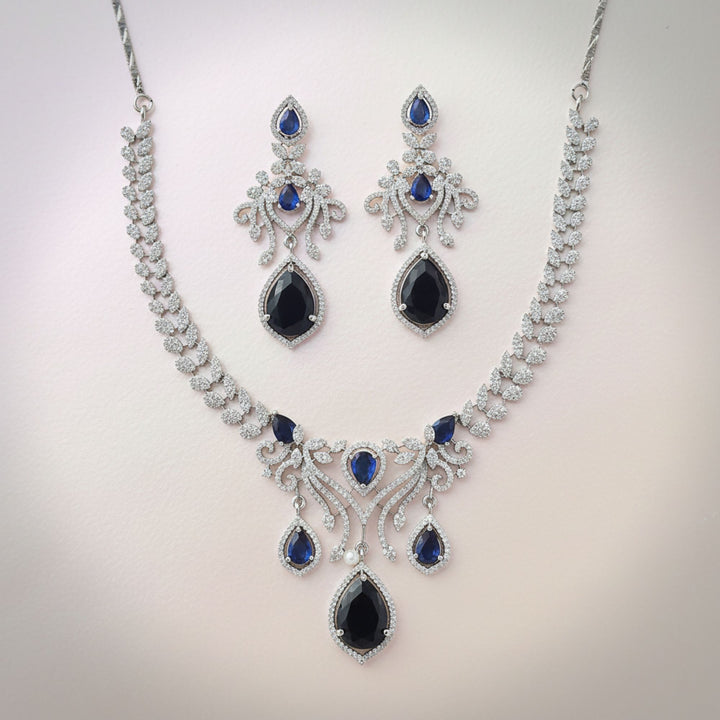 Weight: 52.0 Grams, Earring Height = 62 mm || Width = 28 mm,Regular Size And Adjustable,Latest Design,Rhodium Plating,American Diamond Necklace Set