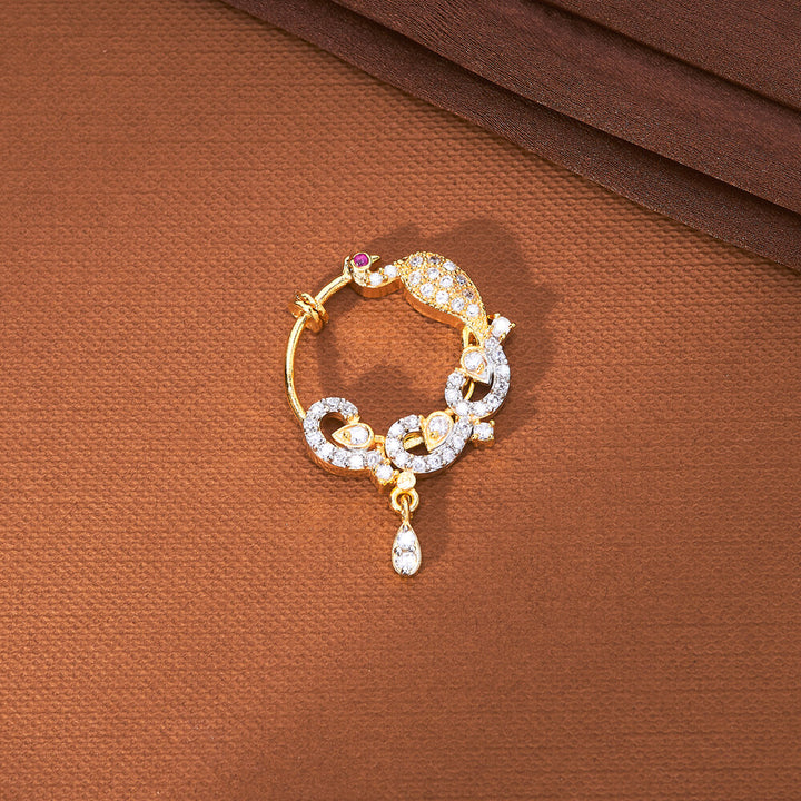 Weight: 4.0 Grams, Height = 32 mm || Width = 21 mm,Peacock Nose Ring,American Diamond Nose Ring