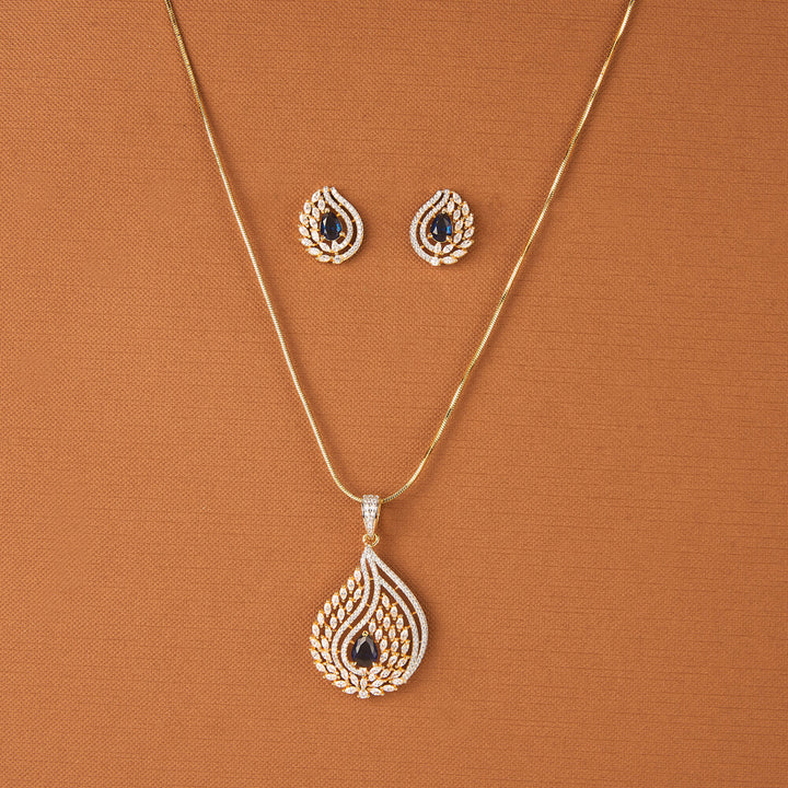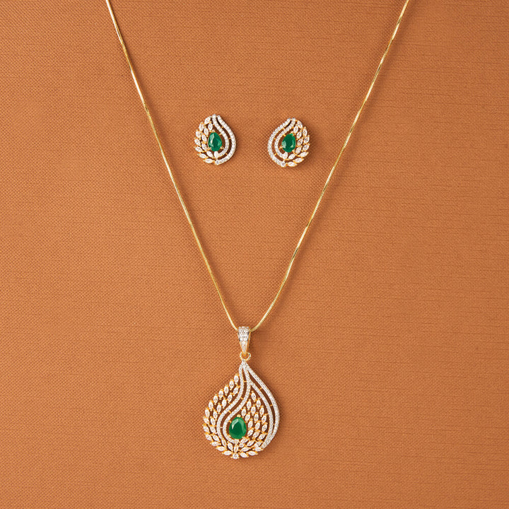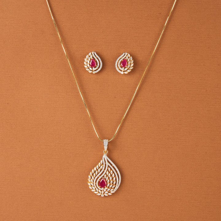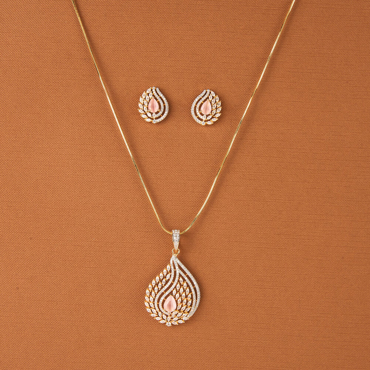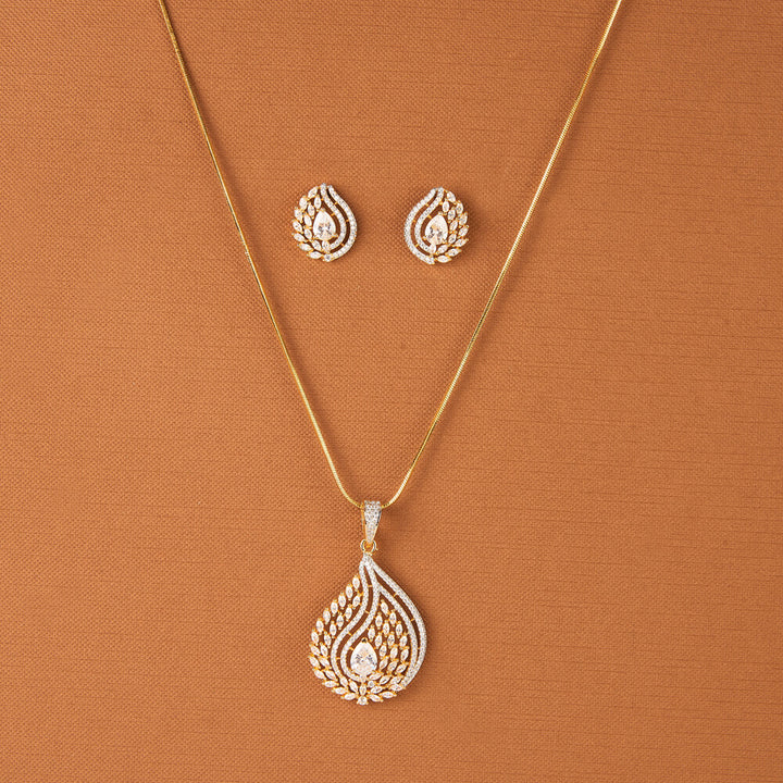 437649 Cz Classic Pendant Set With 2 Tone Plating
