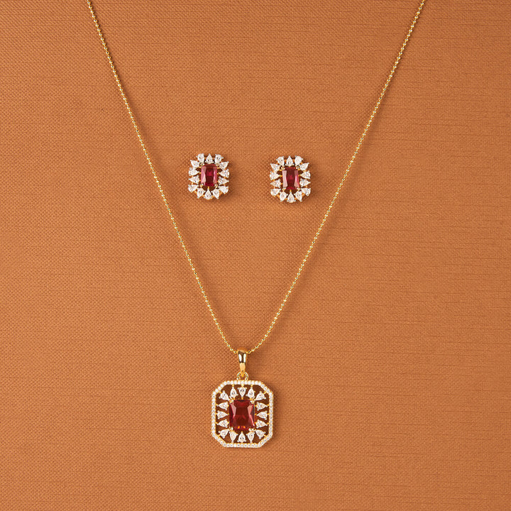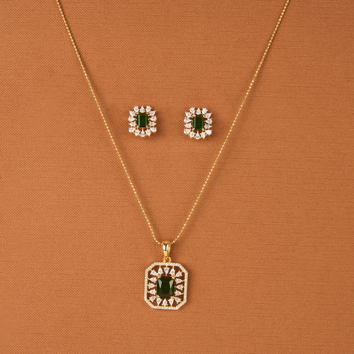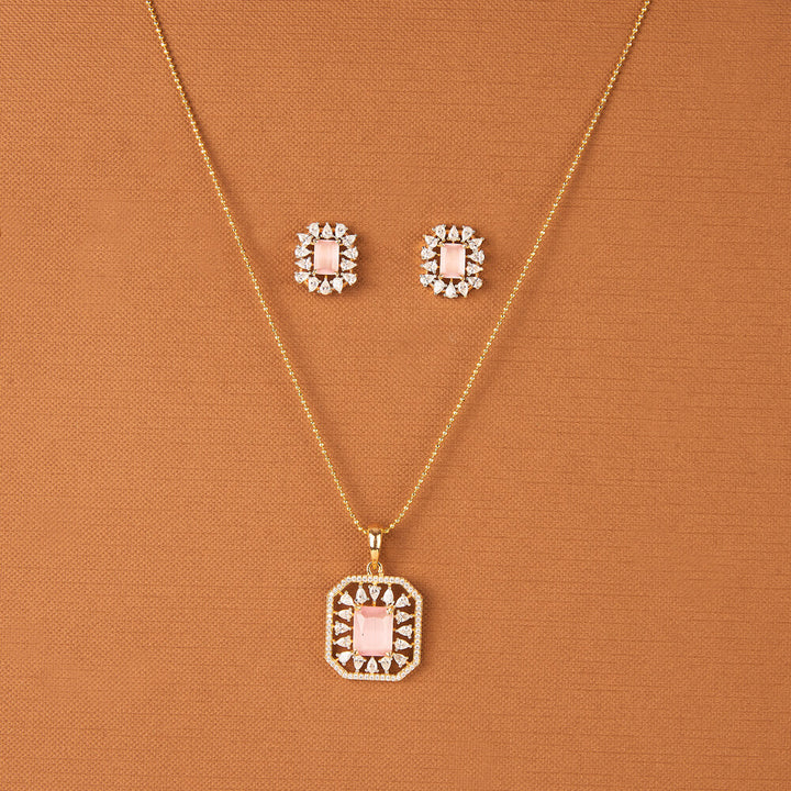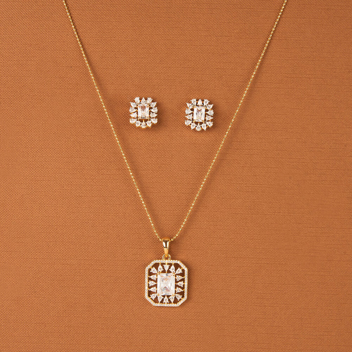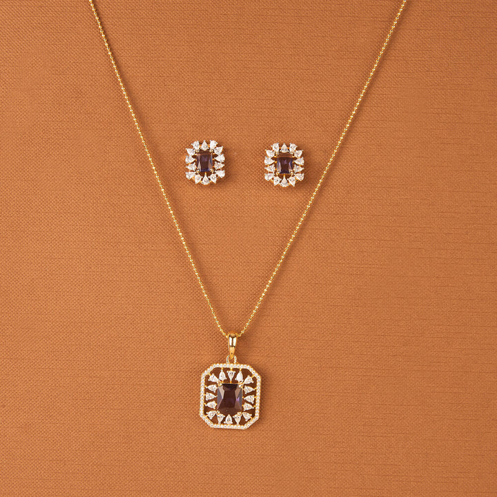 437686 Cz Classic Pendant Set With 2 Tone Plating
