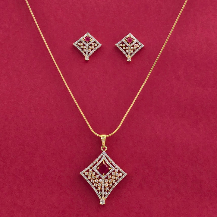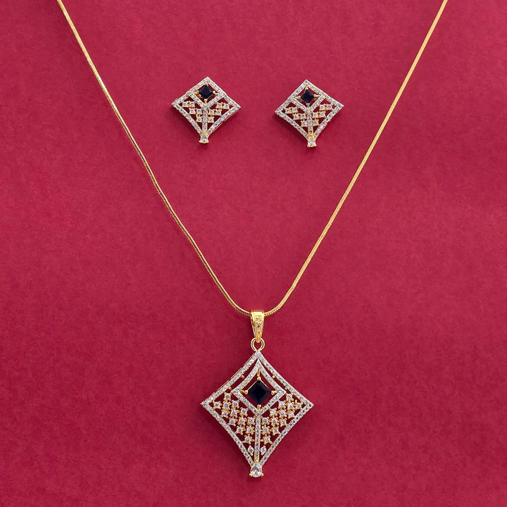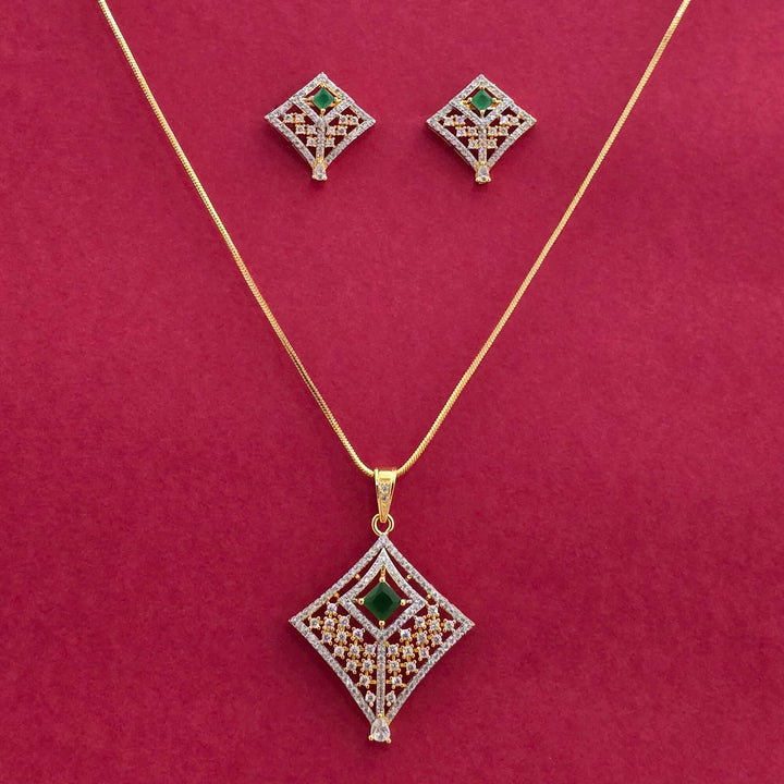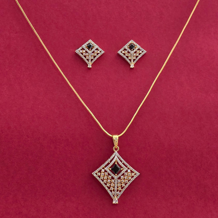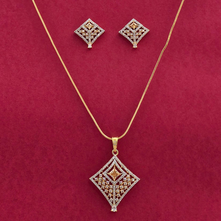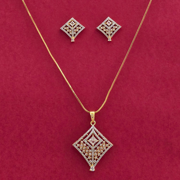 439073 Cz Classic Pendant Set With 2 Tone Plating