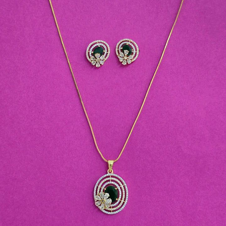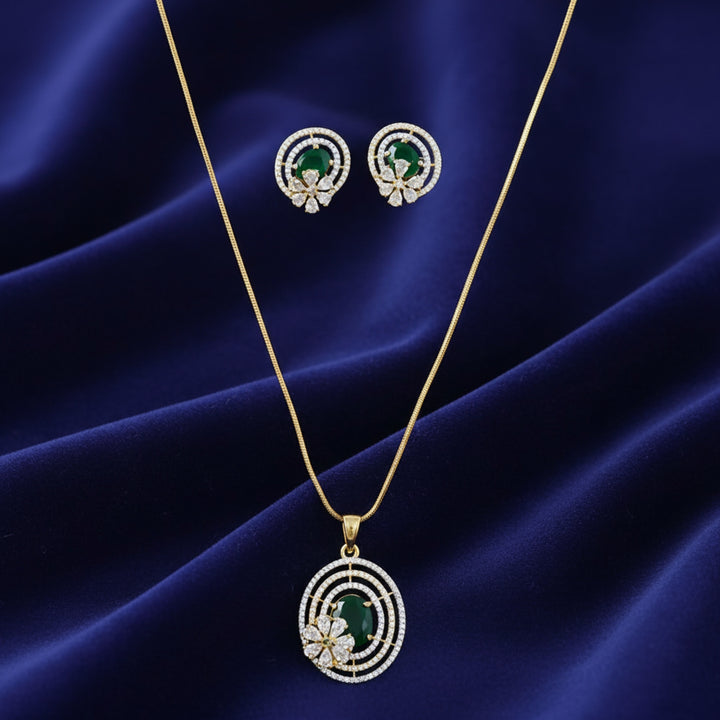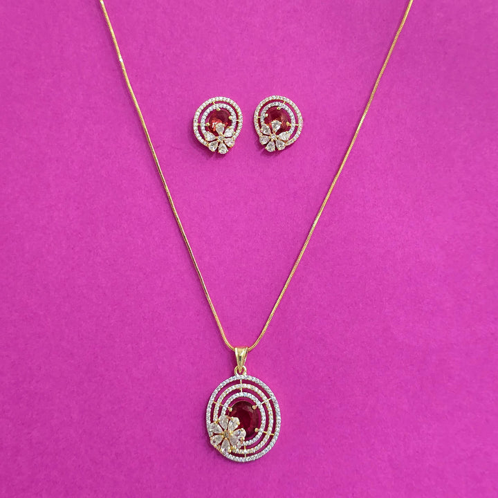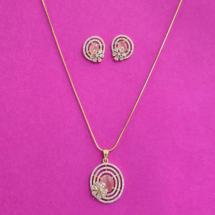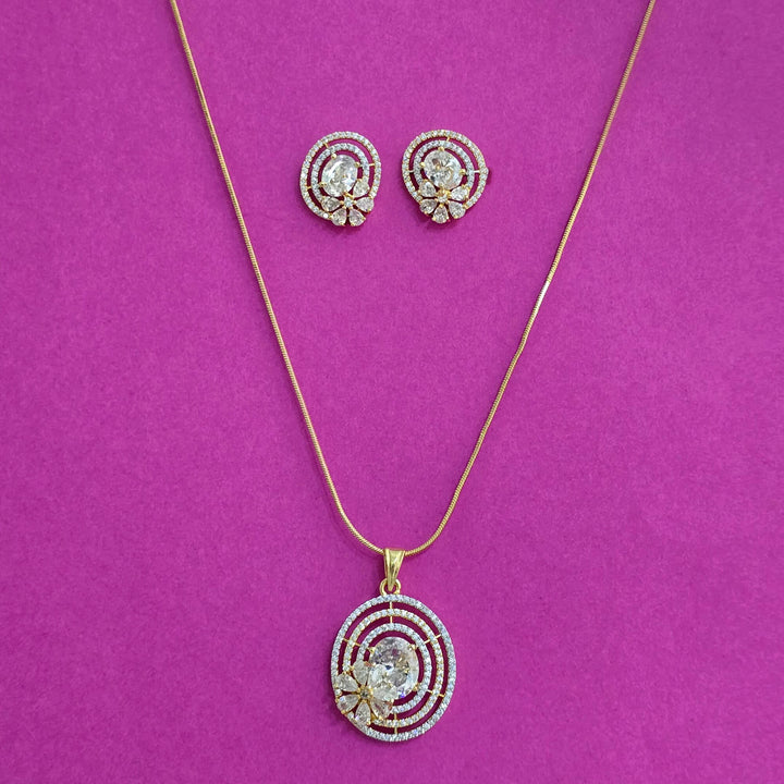 439632 Cz Classic Pendant Set With 2 Tone Plating