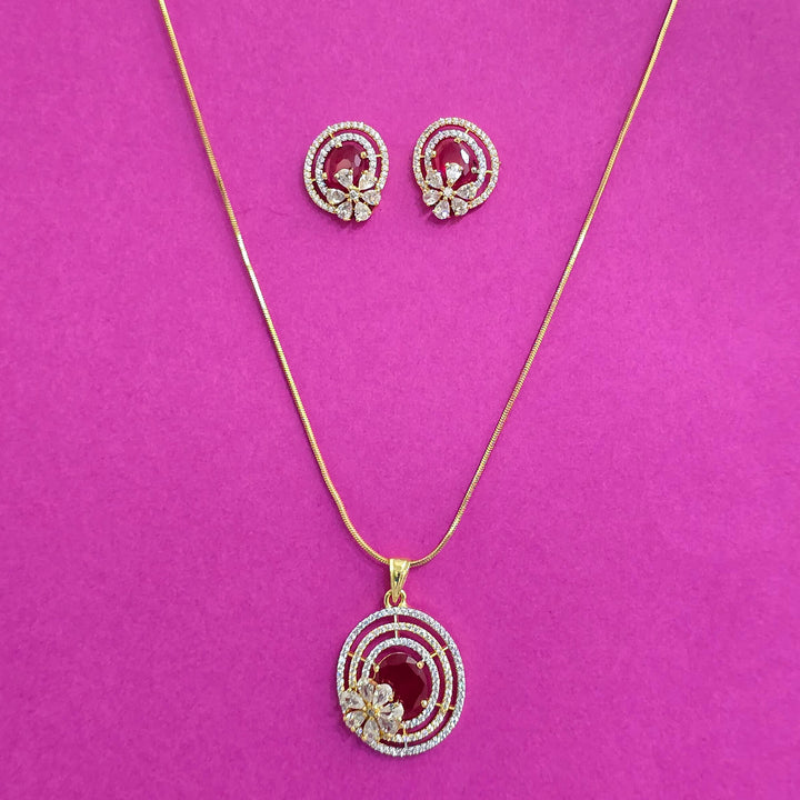 Weight: 18.0 Grams, Pendant Height = 38 mm || Width = 24 mm,Earring Height = 20 mm || Width = 18 mm,Length = 16 Inch,2 Tone Plating,American Diamond Pendant Set