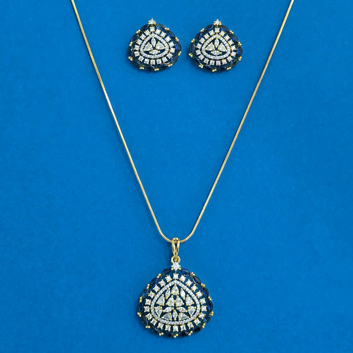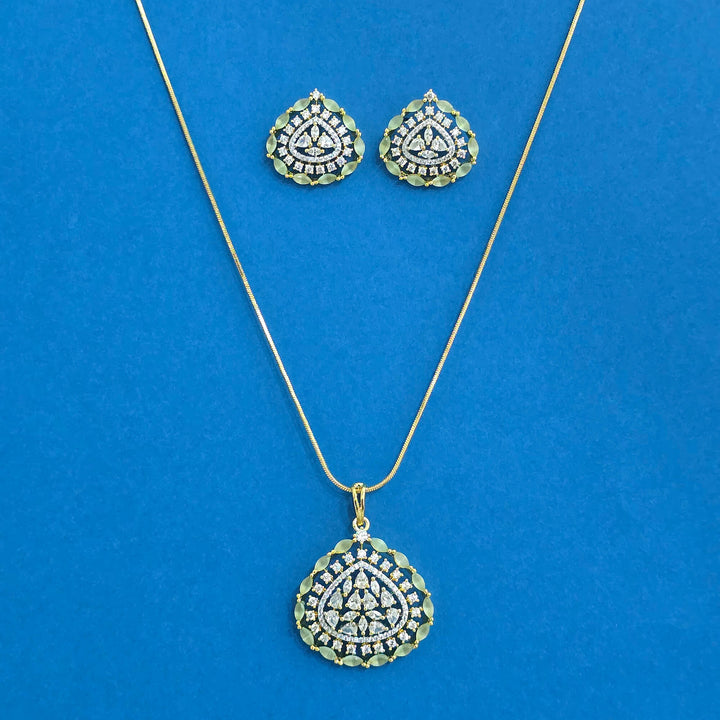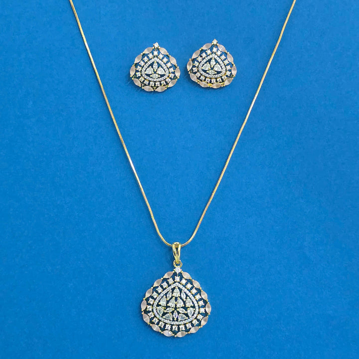 439646 Cz Classic Pendant Set With 2 Tone Plating
