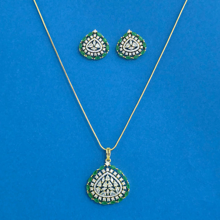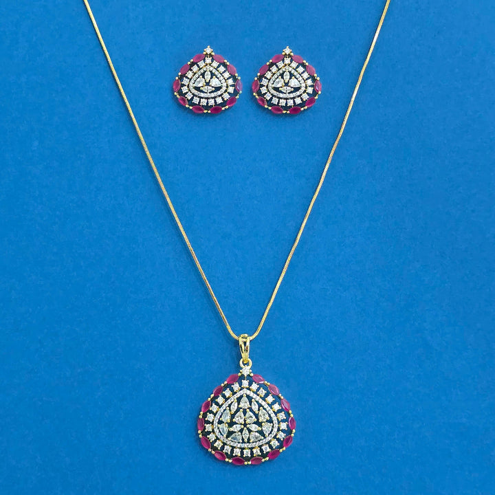 Weight: 20.0 Grams, Pendant Height = 42 mm || Width = 34 mm,Earring Height = 25 mm || Width = 24 mm,Length = 16 Inch,2 Tone Plating,American Diamond Pendant Set