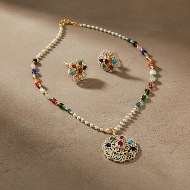 439665 Cz Classic Pendant Set With 2 Tone Plating