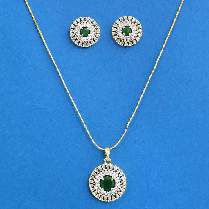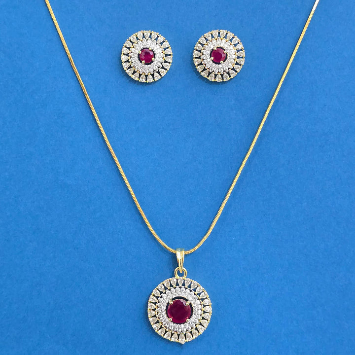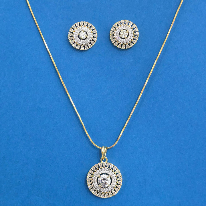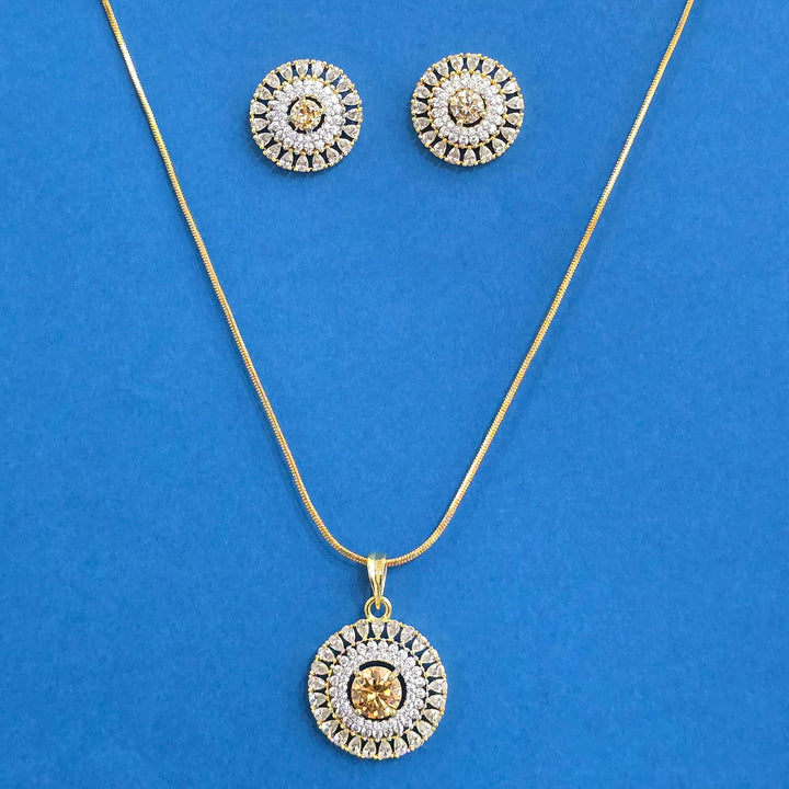 440367 Cz Classic Pendant Set With 2 Tone Plating