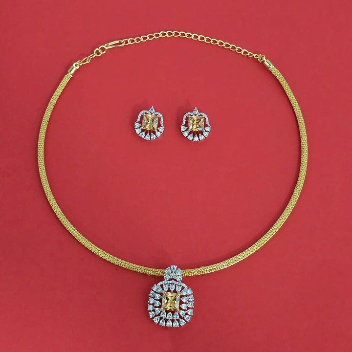 442044 Cz Classic Pendant Set With 2 Tone Plating