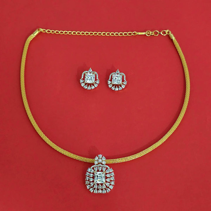 Weight: 25.0 Grams, Pendant Height = 30 Mm || Width = 20 Mm,Earring Height = 17 Mm || Width = 15 Mm,Regular Size (Approx 10 Inch) & Adjustable,2 Tone Plating,American Diamond Pendant Set