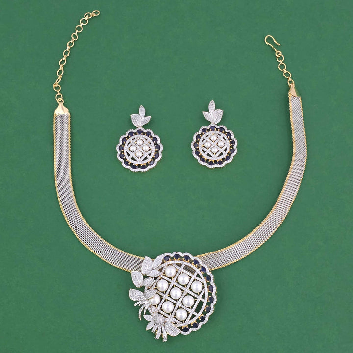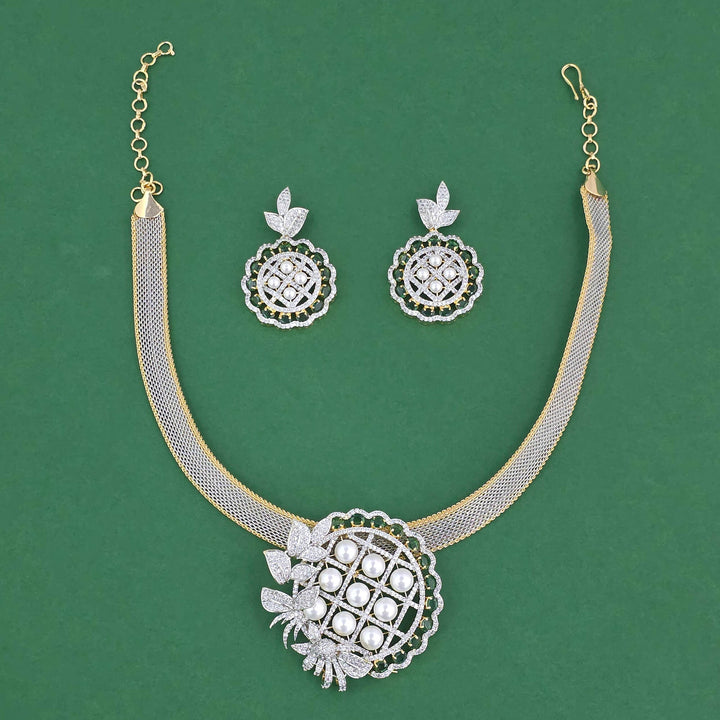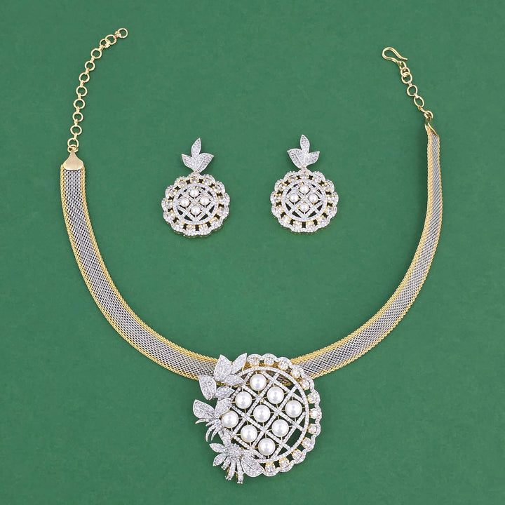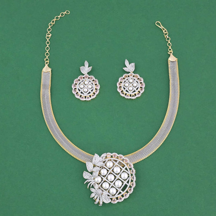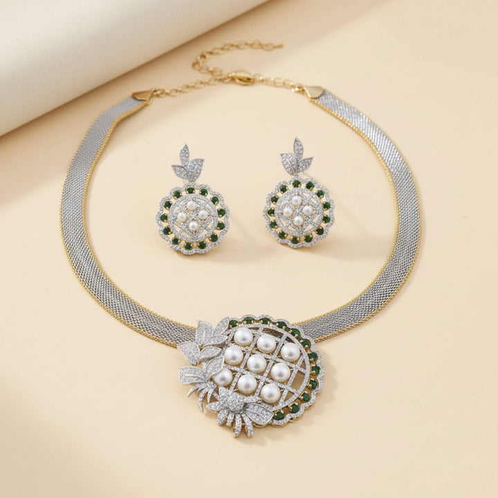 442197 Cz Classic Pendant Set With 2 Tone Plating