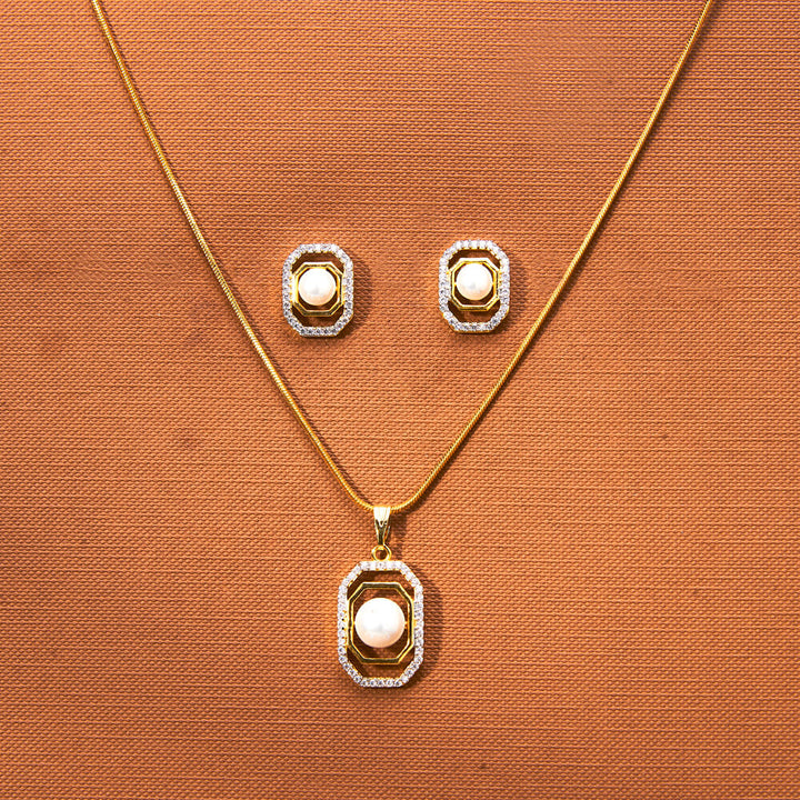 Weight: 10.0 Grams, Pendant Height = 23 mm || Width = 15 mm,Earring Height = 15 mm || Width = 12 mm,Chain-16 Inch,American Diamond Pendant Set