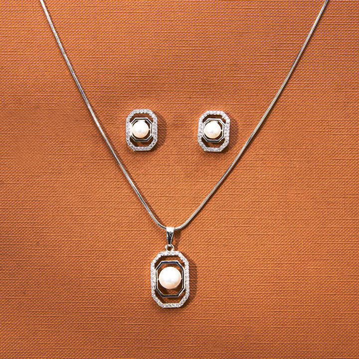 435008 Cz Classic Pendant Set With 2 Tone Rhodium Plating