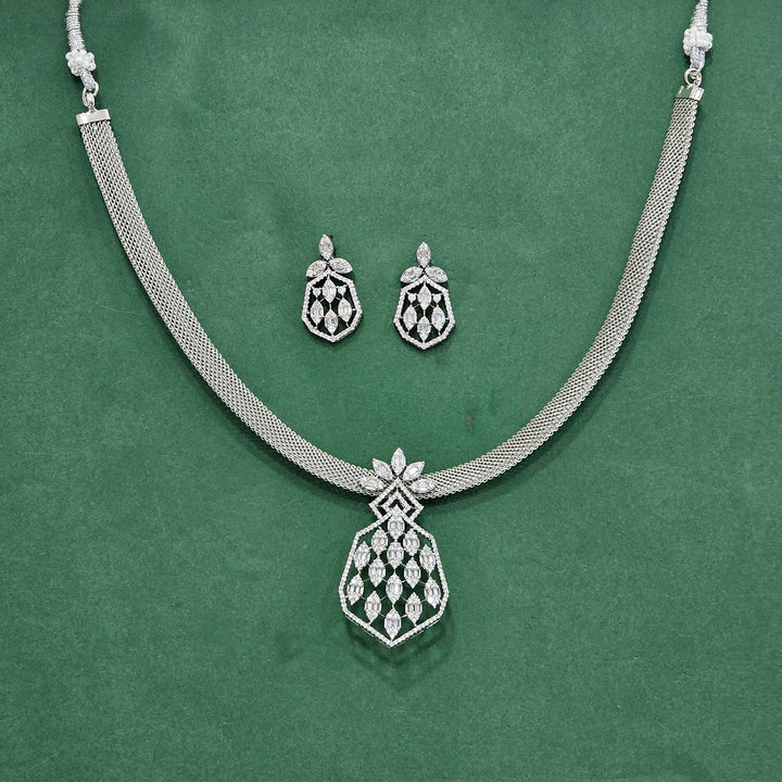 Weight: 30.0 Grams, Pendant Height = 50 mm || Width = 26 mm,Earring Height = 27 mm || Width = 15 mm,Regular Size And Adjustable,2 Tone Plating,Rhodium Plating,American Diamond Pendant Set