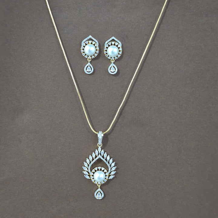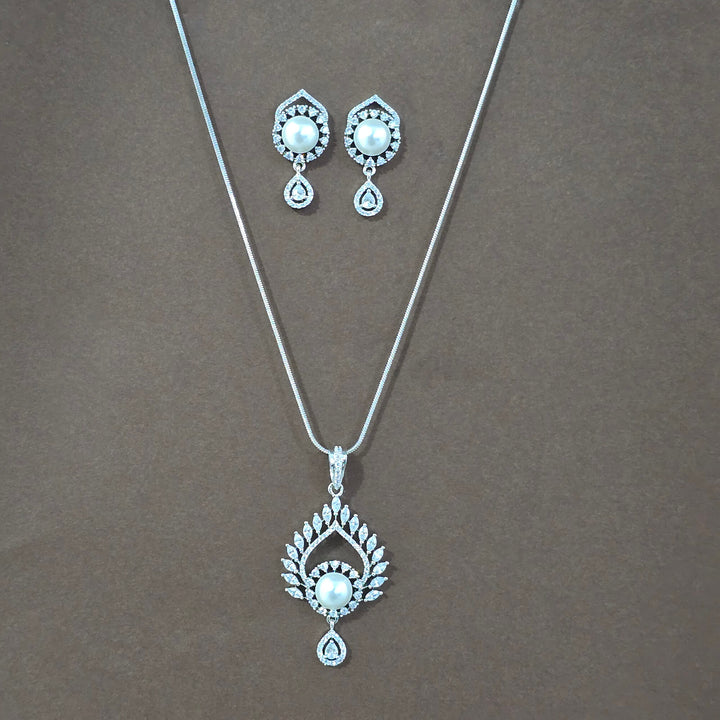 Weight: 18.0 Grams, Pendant Height = 53 Mm || Width = 25 Mm,Earring Height = 30 Mm || Width = 12 Mm,Length = 16 Inch,2 Tone Plating,Rhodium Plating,American Diamond Pendant Set