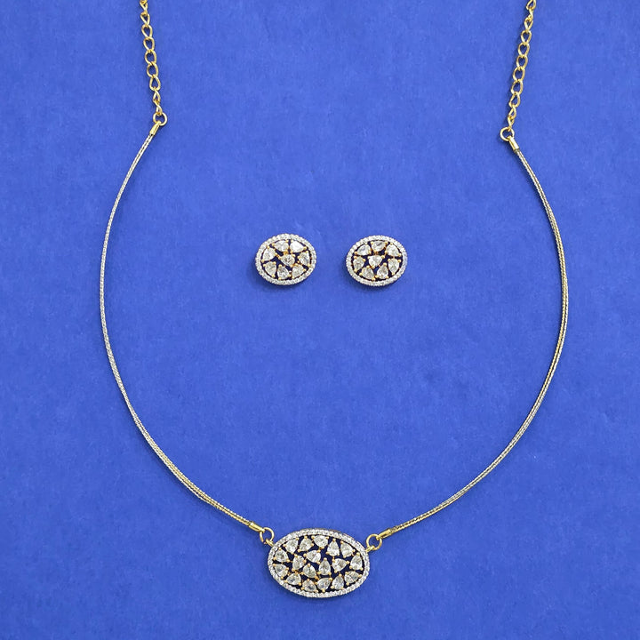 Weight: 17.0 Grams, Pendant Height = 19 mm || Width = 28 mm,Earring Height = 18 mm || Width = 15 mm,Regular Size And Adjustable,2 Tone Plating,Rhodium Plating,American Diamond Pendant Set