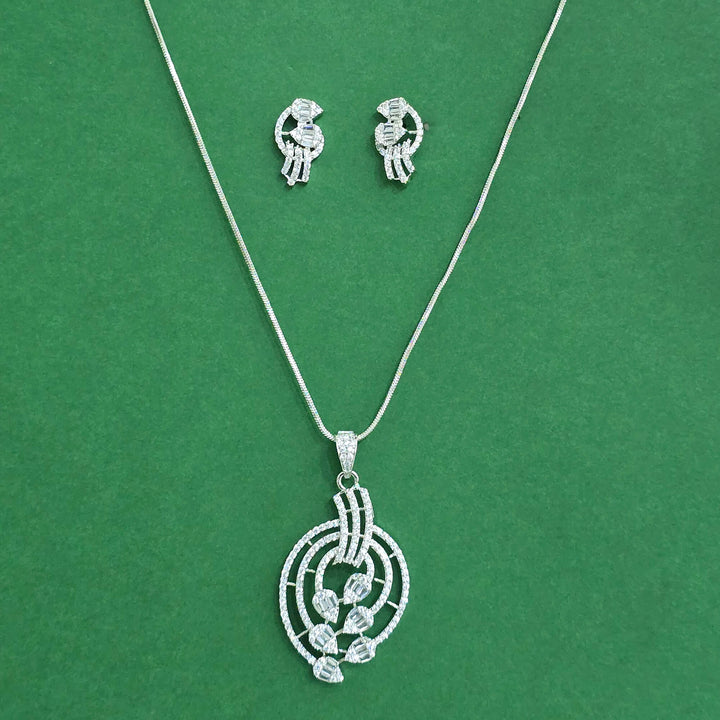 440595 Cz Classic Pendant Set With Rhodium Plating