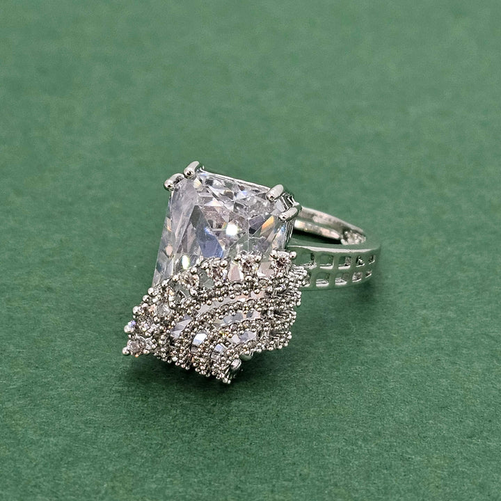 Weight: 7.0 Grams, Height = 18 mm || Width = 15 mm,Adjustable Ring,American Diamond Ring